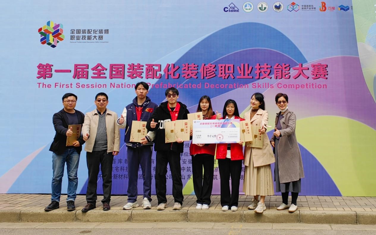 本次比赛共有100+所职业院校、300+支竞赛队伍、2000+名师生报名参与大赛。我校建筑工程学院学生团队(张静霞、陈燕霞、麦铭辉、俞嘉熙4位同学)精心准备,沉着应战,在决赛中取得“全国首届装配化装修职业技能大赛”一等奖的优异成绩,其中俞嘉熙同学荣获“技术能手奖”称号,李湘华、赵一丹老师荣获“优秀指导教师”称号。