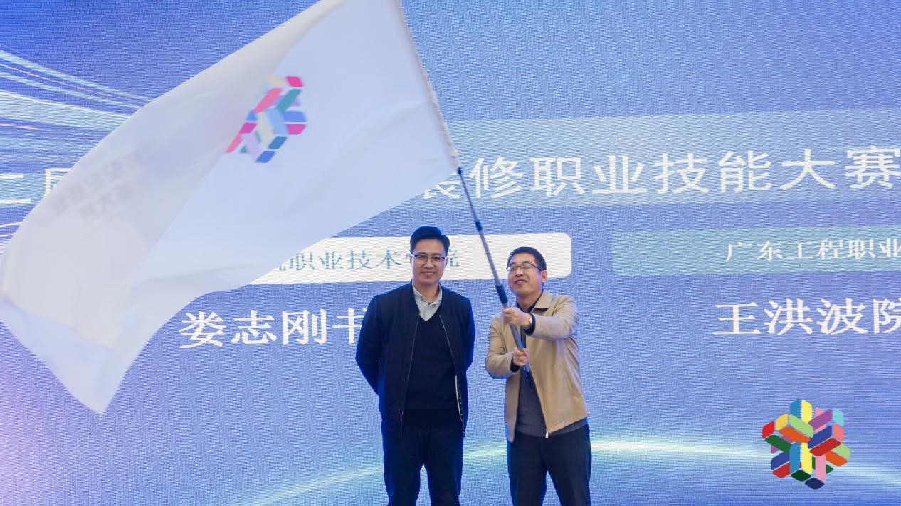 全国第二届装配式装修职业技能大赛将于今年10月下旬举行,由我校承办,王洪波院长代表学校接受了赛旗。