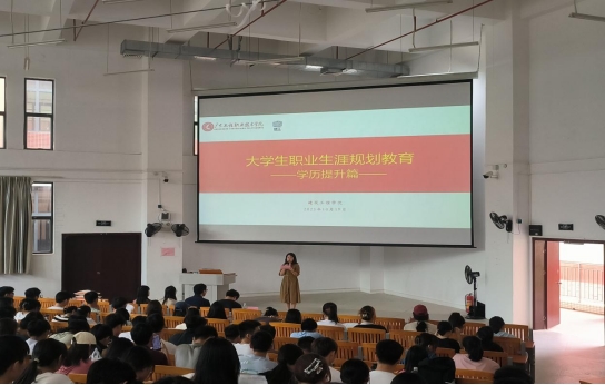 为指导学生做好职业生涯规划,尤其通过学历提升做好人生规划,10月19日下午,建筑工程学院(以下简称“学院”)在省职教城(清远)校区Q1-110开展了大学生职业生涯规划之学历提升专题讲座。本次讲座邀请学院党委副书记晋保山和继续教育指导老师陈雯君担任主讲嘉宾,400余名学生参加,讲座由学院2023级辅导员何少云主持。