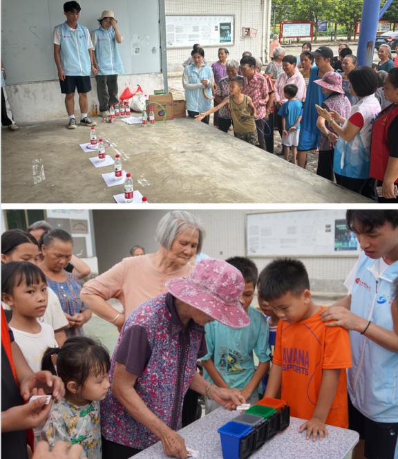 为进一步推动乡村美化工程,增强村民环保意识,实践铸青春突击队通过寓教于乐的小游戏开展环保宣传活动,介绍了垃圾分类的重要性、分类标准及投放方法,通过趣味问答的方式,以及分类投发“垃圾”小卡片的形式,并设置小奖品,激发村民的参与热情,加深他们对垃圾分类知识的理解和记忆,切实提高村民的环保理念,促进乡村垃圾分类行动落地。
