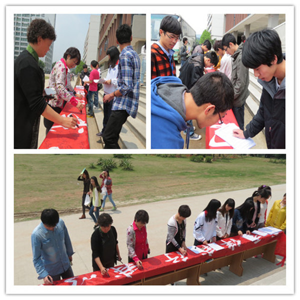 4月12日上午,“书香伴我行,我以书为友”签名活动和“图书馆读者借阅排行榜”启动活动在图书馆大楼门前举行,拉开了本次4.23读书活动月的序幕。学院领导胡艳曦副院长、院学生工作部的老师们、图书馆老师们、院读者协会会员以及众多师生参加了活动并在“读书活动月”宣传条幅上签名。
