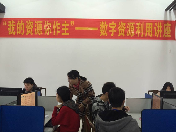 为帮助广大读者尤其是2014级新生了解和掌握图书馆的数字资源及相关服务,图书馆在2014年读者活动周期间,举办了“我的资源你做主”数字资源利用讲座。12月4日上午,本场讲座在图书馆6楼多功能培训室举行,由图书馆技术服务部徐红老师负责主讲,来自各学院的学生读者参加了培训。