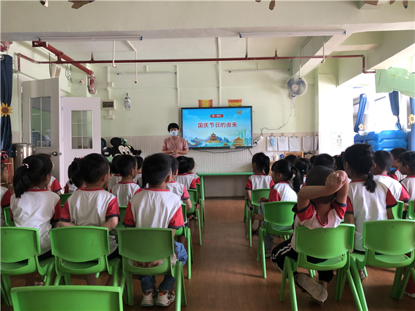 9月29日,图书馆吕玉婷及叶仕平两位老师走进渔兴幼儿园,为幼儿园大班级小朋友上了一堂 “讲红色故事 传红色经典”的主题课。课堂上叶仕平老师为小朋友们讲述了国庆节的由来、中华人民共和国诞生的历史、国庆节庆典等内容;吕玉婷老师挑选了红色经典绘本《鸡毛信》,为小朋友们讲述小英雄海娃的故事,并指导小朋友进行诵读;最后两位老师与小朋友们同唱《我和我的祖国》,一起歌唱祖国送祝福。