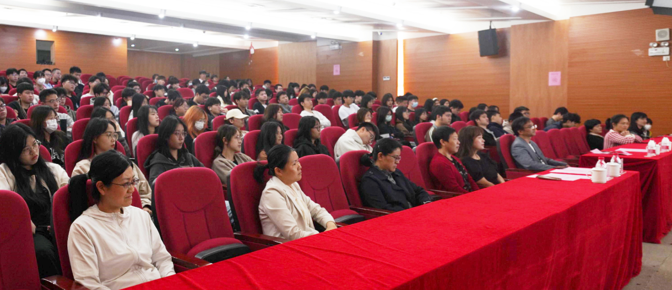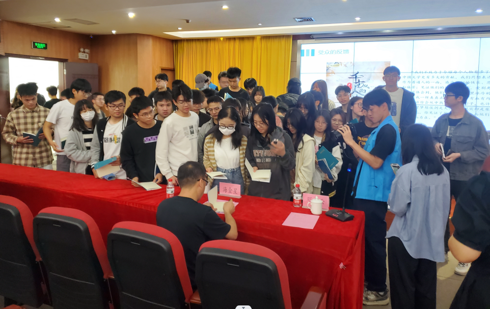 4月26日上午, 读书月系列活动之“导演与你面对面”分享会在广州校区报告厅举行。讲座以新媒体时代纪录片的创作与传播为主题,图书馆邓中云馆长为活动致辞。他介绍了本次讲座的基本情况,向海金星导演及其团队的支持表示感谢,对海金星导演为我们解读纪录片在创作与传播中蕴含的故事表示期待。邓中云馆长还介绍了图书馆读书月开展的一系列阅读推广活动,希望通过丰富多彩的活动来活跃校园文化氛围,发挥图书馆以美育人、以文化人的职能,为师生读者提供便利知识获取途径,营造良好的阅读环境。