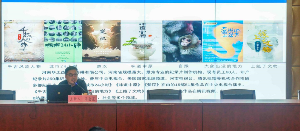 讲座主讲人海金星导演是河南华之杰文化传播有限公司总导演,曾与美国国家地理频道、中央电视台、河南电视台、腾讯视频、优酷视频合作拍摄多部优秀纪录片。