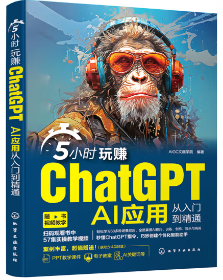 书 名:5小时玩赚ChatGPT:AI应用从入门到精通 著 者:AIGC文画学院 著 出版社:化学工业出版社 出版时间:2024年 馆藏地点:广州/清远校区图书馆 索书号:TP18/124 【内容简介】 本书包括40多个ChatGPT案例解析50多集教学视频,80多个素材效果文件,120个实用干货内容,130多个指令赠送,助读者一本书从入门到精通运用ChatGPT!随书还赠送了150多页PPT教学课件,辅助读者学习。 本书分为5大章节:了解市场、知晓原理、操作实战、精通运用、思路拓展,帮助读者理解ChatGPT的原理和应用,掌握使用ChatGPT进行自然语言处理的基本技能,并有能力将ChatGPT应用于实际项目中。无论你是初学者还是有一定经验的开发者,这本书都将成为你学习和使用ChatGPT的理想指南。 |