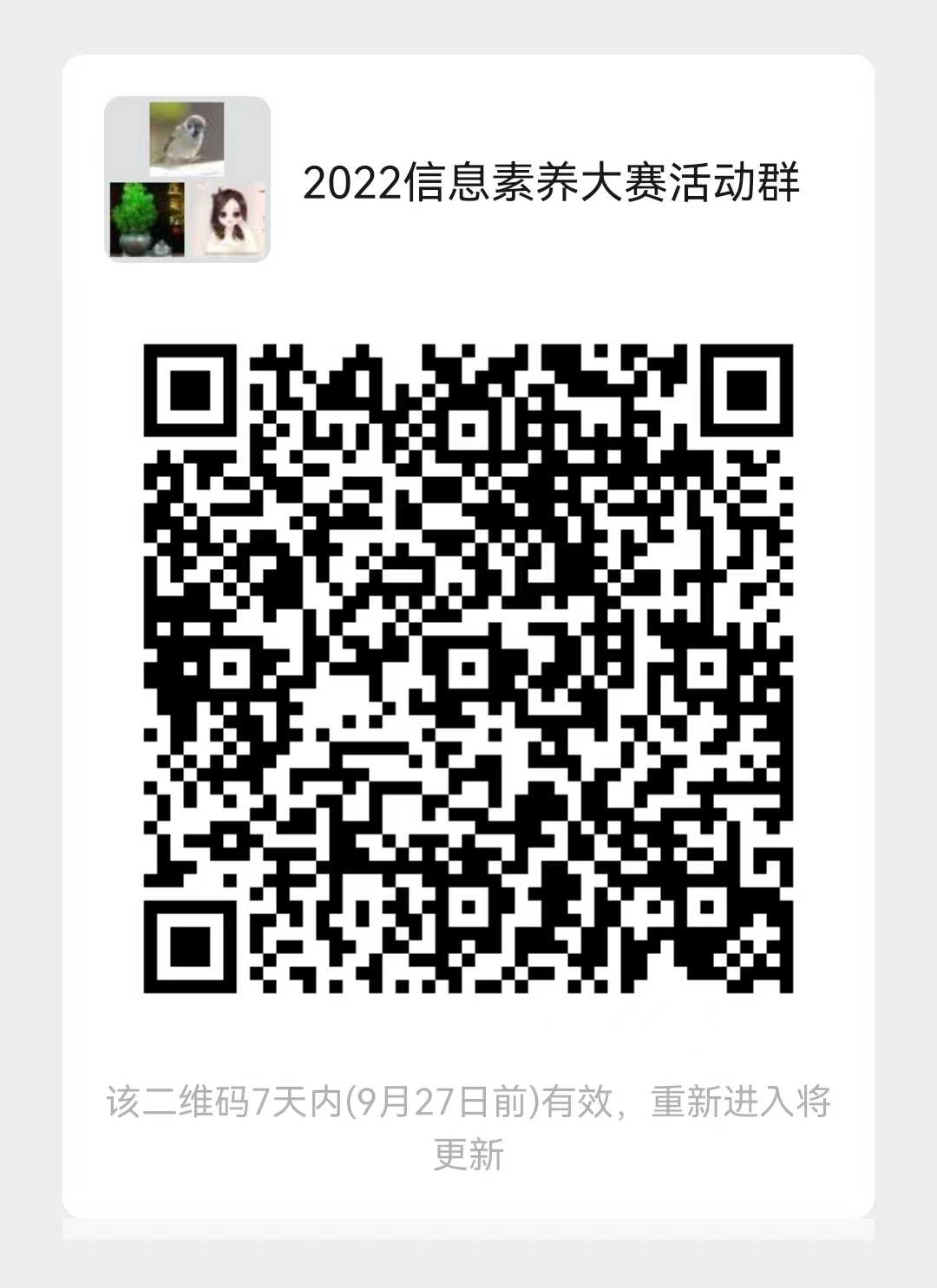 请有意向参加的同学加入信息素养大赛活动群或是添加活动负责人微信,添加时请备注好: 院系+姓名+信息素养