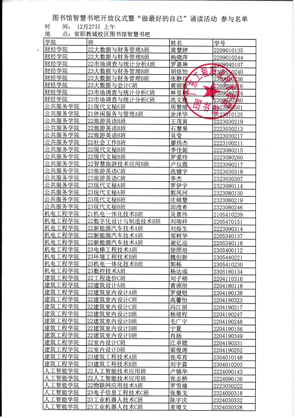 图书馆智慧书吧开放仪式暨“做最好的自己”诵读活动参与名单