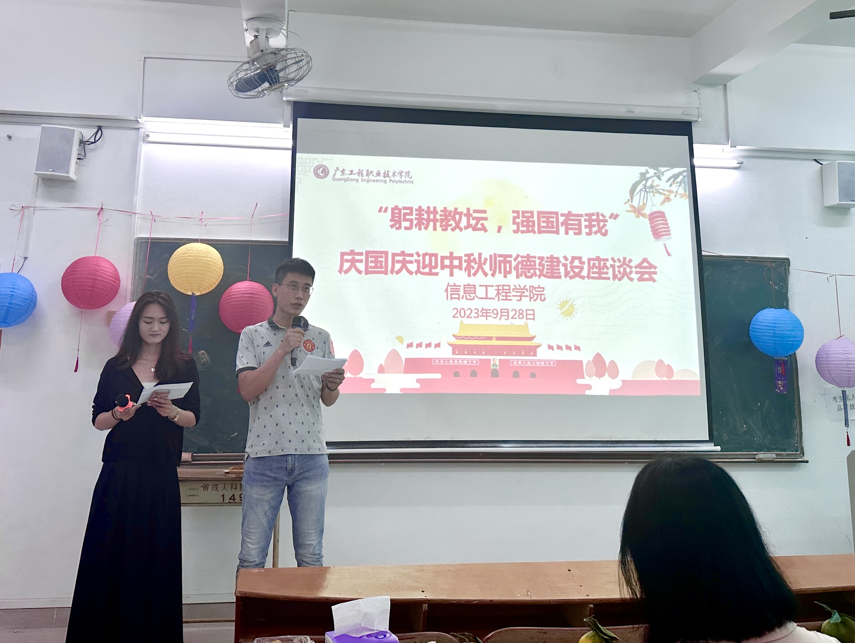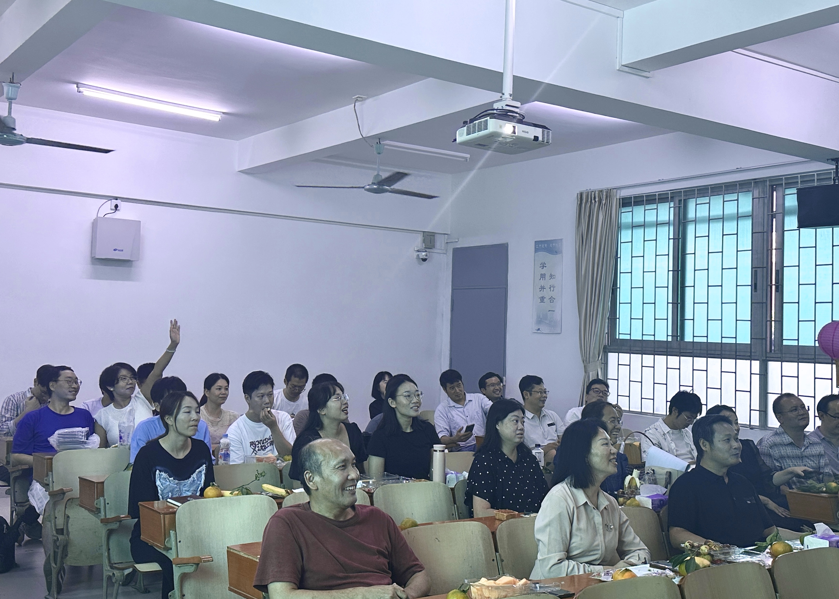 在议程中,还穿插了猜灯谜等小游戏,由梁晓晴老师与许焕坚老师主持的猜灯谜活动激起了在场老师们的热情,老师们纷纷踊跃举手抢答,现场氛围热烈。