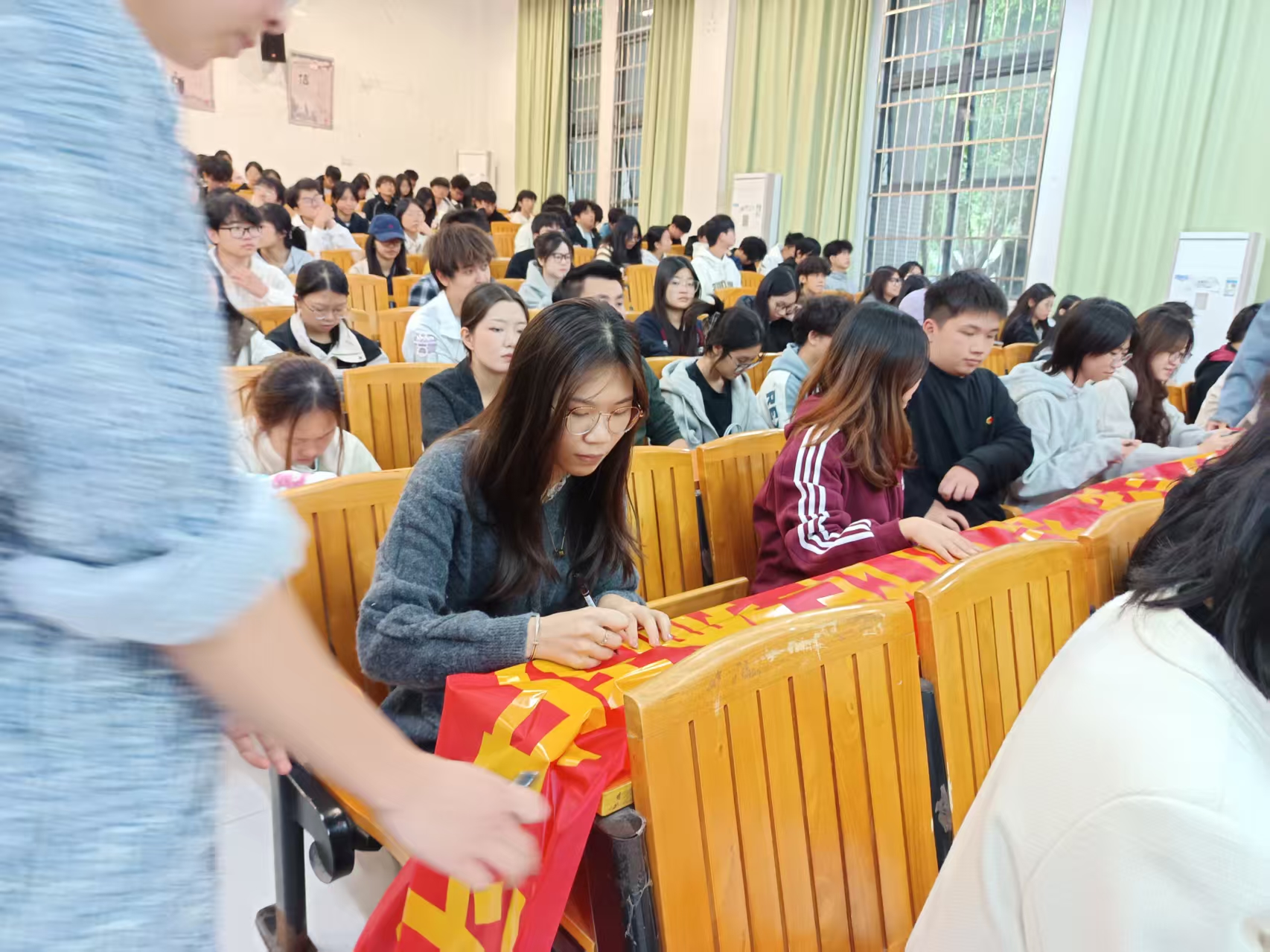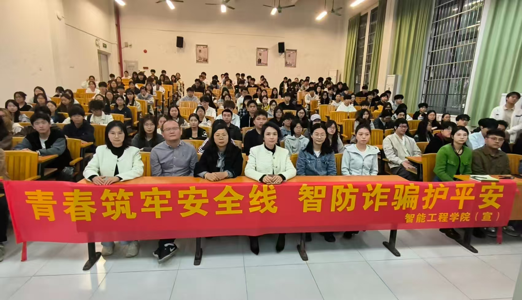 活动尾声,在场全体师生共同参与了“青春筑牢安全线,智防诈骗护平安”签名仪式。大家纷纷在宣传横幅上郑重签名,表达了坚决抵制网络诈骗、共同维护校园网络安全的坚定决心。这条承载着200余名师生承诺的横幅,将被悬挂于学院主干道,成为流动的“反诈宣言”。