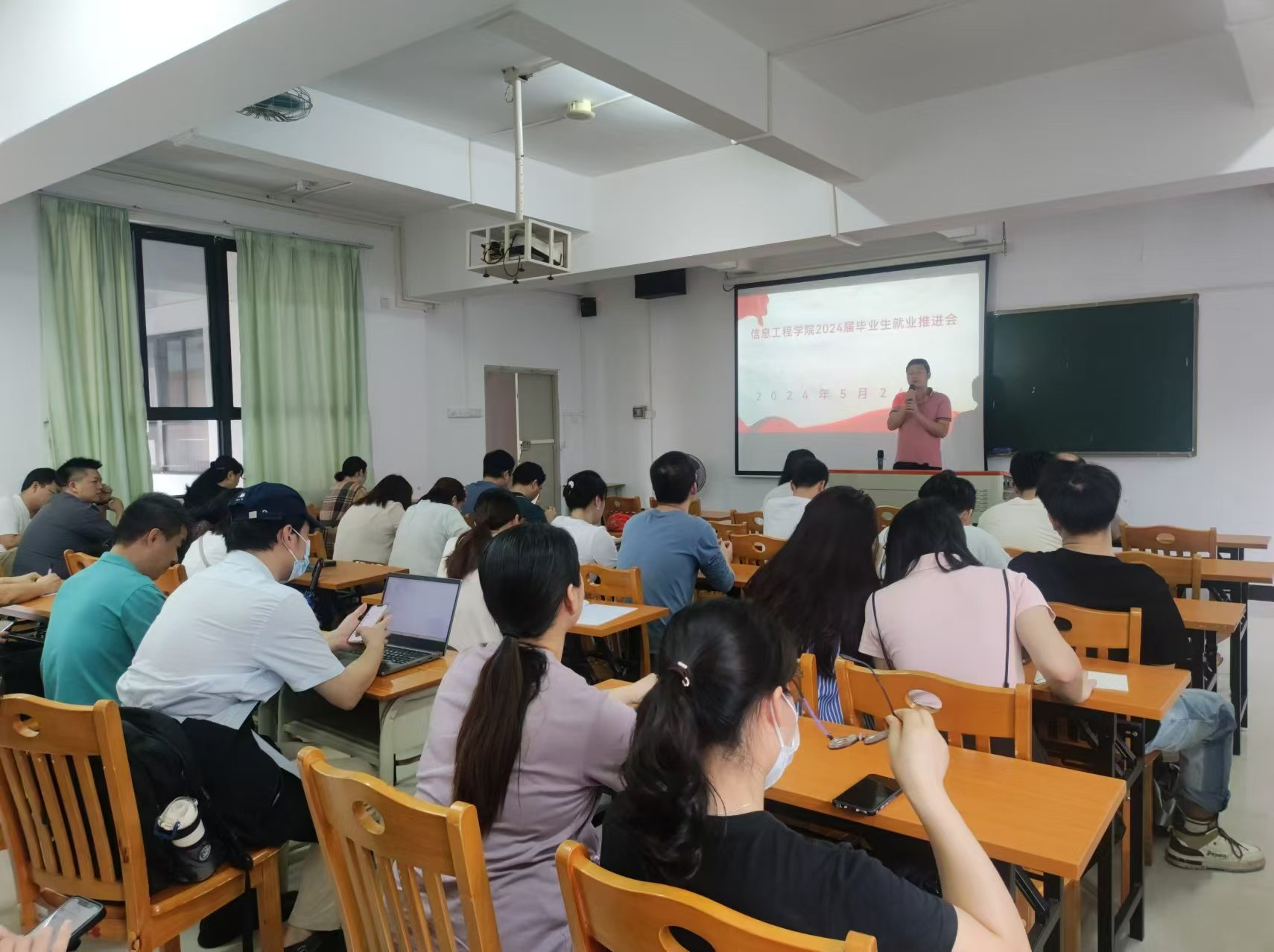 为进一步贯彻就业政策,扎实做好2024届毕业生就业工作,提升就业工作质效,2024年5月24日下午,信息工程学院在科技楼302组织召开2024届毕业生就业推进会,学院党委书记桂爱民、院长利业鞑、学院党委副书记艾华武、顶岗实习指导老师、毕业班辅导员以及毕业班班主任参加了会议,会议由艾华武副书记主持。