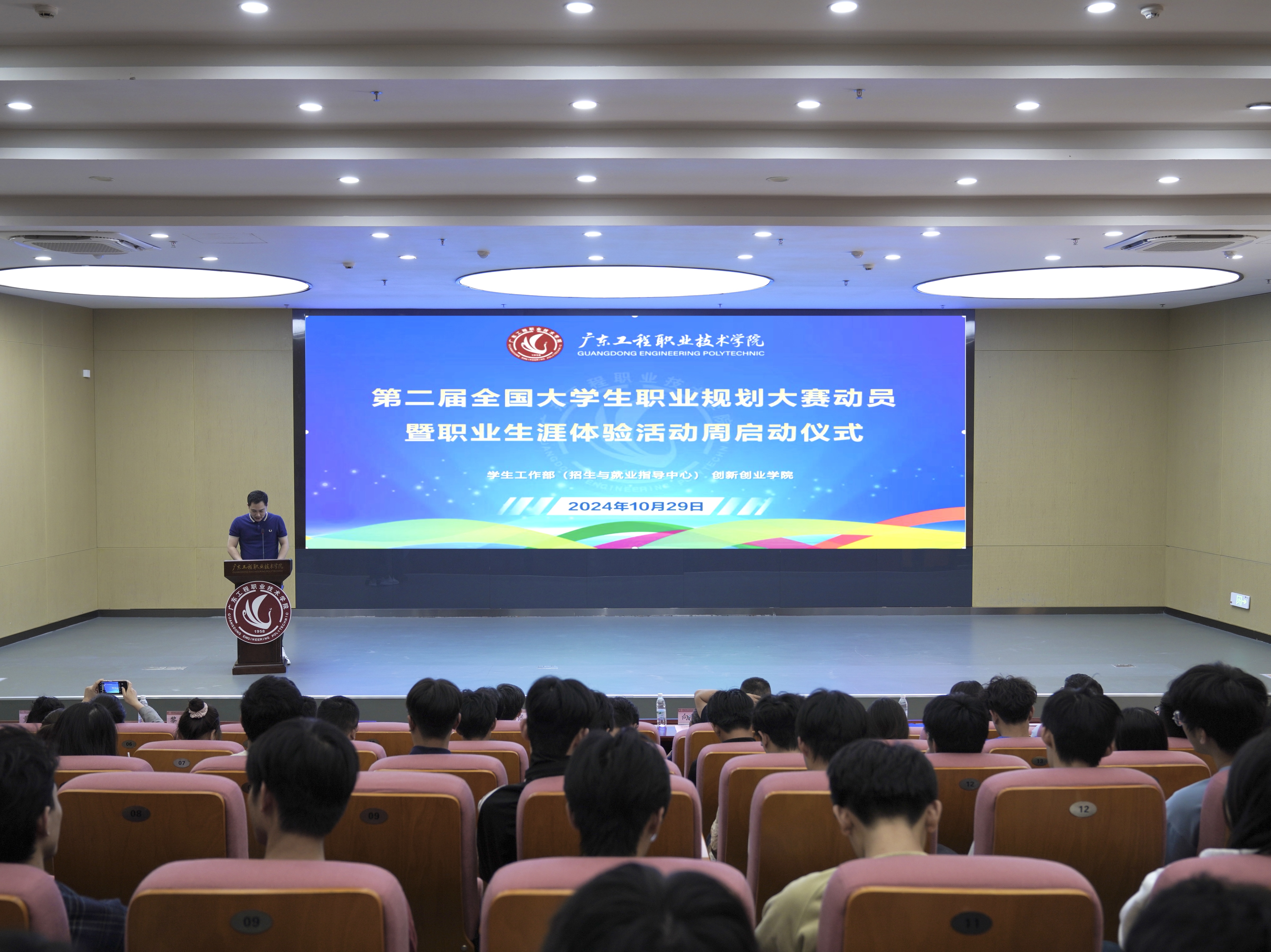为深入贯彻落实教育部关于举办第二届全国大学生职业规划大赛的通知,做好组织动员工作,我校于2024年10月29日下午召开第二届全国大学生职业规划大赛动员暨职业生涯体验活动周启动仪式。副校长张小广出席会议并讲话,特邀广东省高等学校毕业生就业促进会常务副会长向丹阳、副会长林伟坚,优秀校友代表杨时锐参加启动仪式。学生工作部(招生与就业指导中心)、创新创业学院负责人,各二级学院党委书记、副书记及师生代表参加会议。会议由学生工作部部长黄馥丽主持。