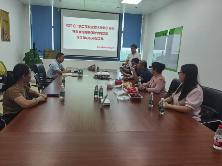6月24日,教务部部长陈淳慧、信息工程学院院长利业鞑、学生工作部副部长原慧琴、软件技术专业负责人徐丽新、专任教师杨咏等一行五人到惠州鼎智通信有限公司开展现代学徒制调研及期末巡考。
