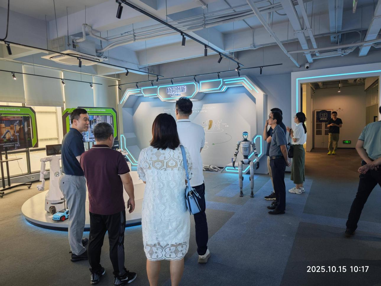 随后,进入到图灵智新展厅中参观,图灵智新公司合伙人王武东围绕公司发展历程、主营业务与技术优势进行了详细的讲解。展厅陈列了图灵智新公司自主研发的硬件与软件成果,展示了公司在具身智能领域从传感、感知、决策到执行的闭环能力,以及与百度、NVIDIA等行业巨头的协同合作模式。