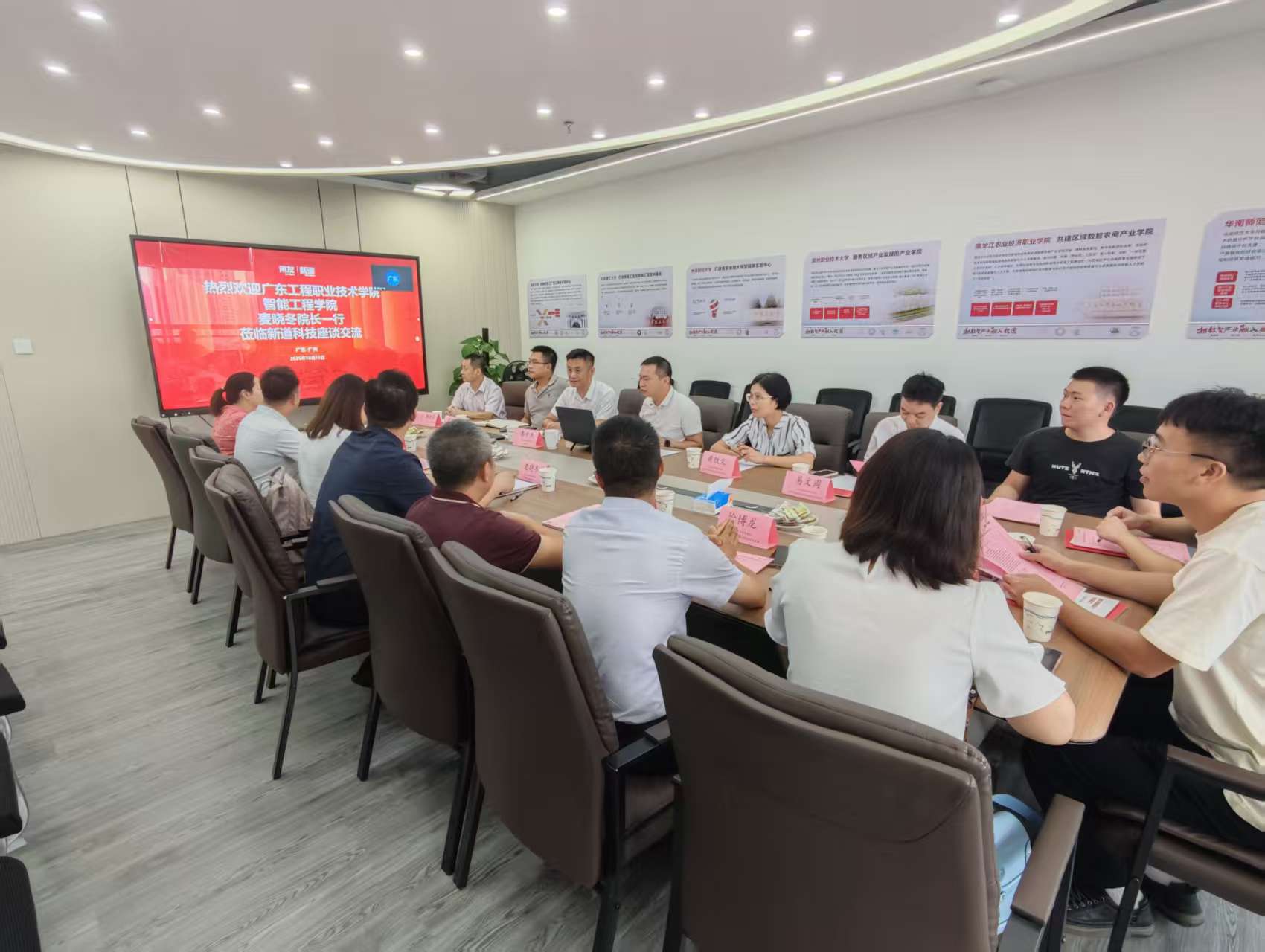 2025年10月13日,智能工程学院院长麦晓冬率专业主任及骨干教师一行15人,赴用友集团·新道科技股份有限公司(以下简称“用友”)开展访企拓岗暨专业发展调研活动。用友新道科技华南区总经理黄堪敬,广州贝禧电子科技有限公司总经理李中杰等企业代表出席座谈,双方围绕产业学院共建、专业群升级、实训基地打造等议题深度交流,达成校企合作意向。
