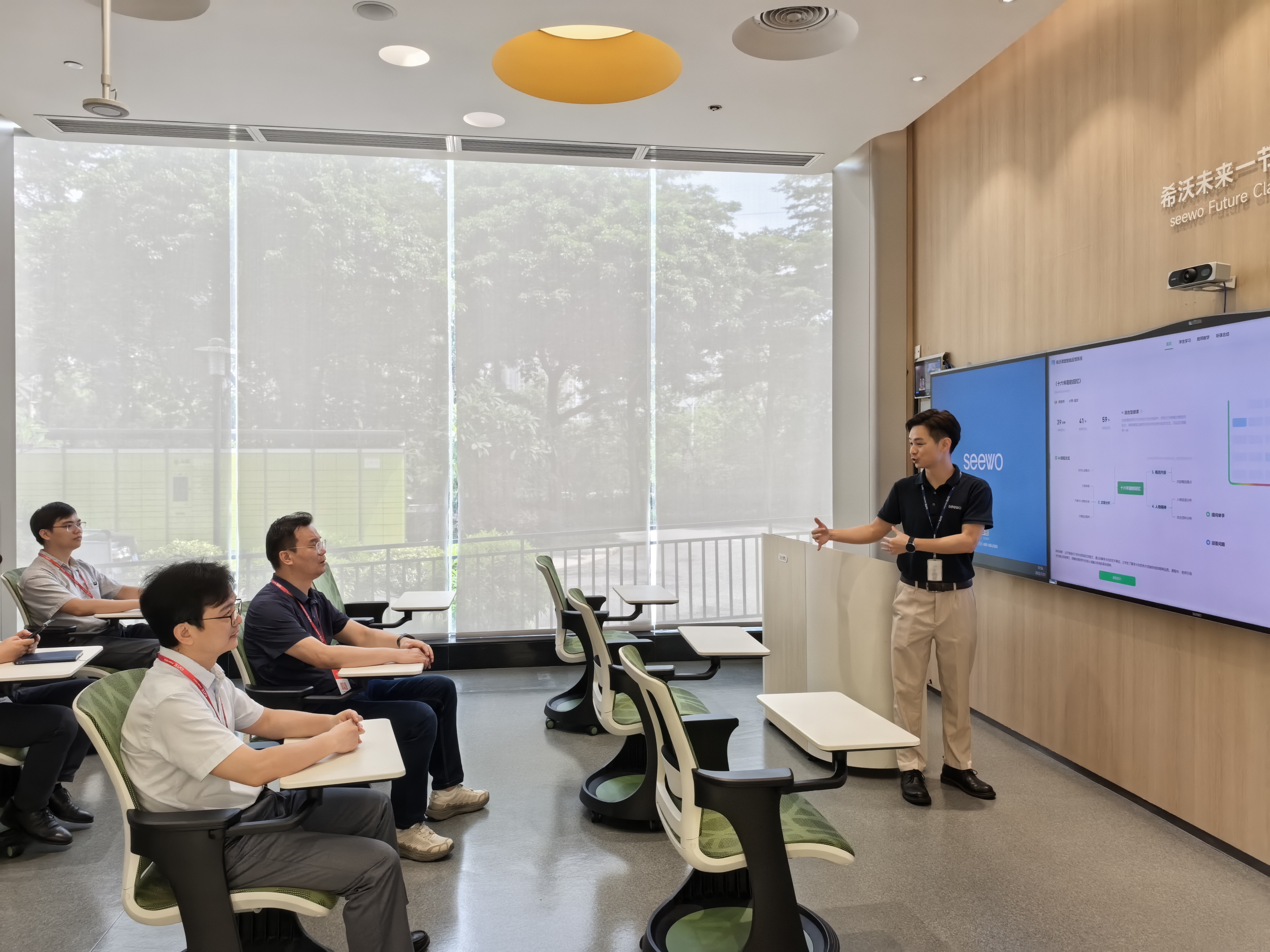 接着,团队前往广州视源电子第二产业园,在广州视源电子总监钟立强的陪同下参观产品展厅。作为国内智能交互解决方案领军企业,视源电子在教育信息化、智能硬件研发领域的丰硕成果给调研团留下深刻印象。从智能交互平板研发到现代化生产线运作,全方位展现的技术实力与人才需求,进一步明确了学院人才培养与产业对接的方向。