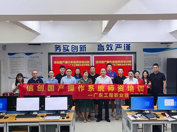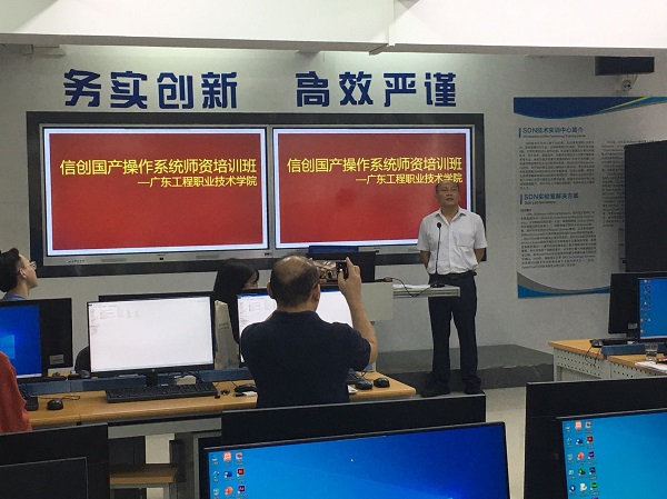 8月5日,由广东工程职业技术学院承办、信息工程学院执行的2022年“信创国产操作系统师资培训班”在天河校区顺利开班。信息工程学院院长利业鞑教授、计算机网络技术专业带头人易文周老师以及全体培训班学员参加了开班仪式。开班仪式由项目负责人暨班主任易文周老师主持,利业鞑院长致辞,利院长首先对全体学员的到来表示热烈欢迎,并要求项目组认真细致做好安排,为学员们提供舒适学习环境,做好后勤服务等工作,全面保障本项目的顺利进行,为来自全省各地高职院校的老师们交上一份满意的答卷,并预祝项目顺利成功。