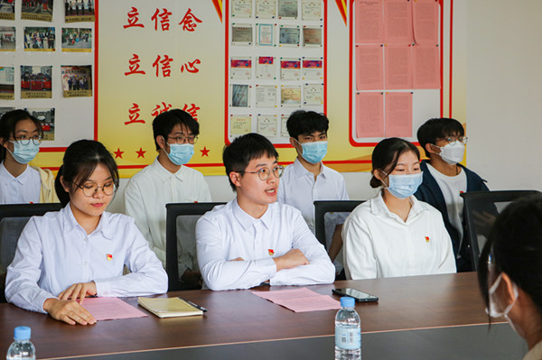 学生党员代表陈利鹏、王晓韵分别分享学习党的二十大报告心得体会:习近平总书记的讲话让我们青年党员深受鼓舞,也深感重担在肩,作为新时代青年,我们应该时刻牢记中国共产党全心全意为人民服务的宗旨,同时,我们应该用实际行动践行这份无比光荣的使命与担当,以实际行动紧跟党的二十大号召,高举中国特色社会主义伟大旗帜,做担当民族大任的新时代青年!