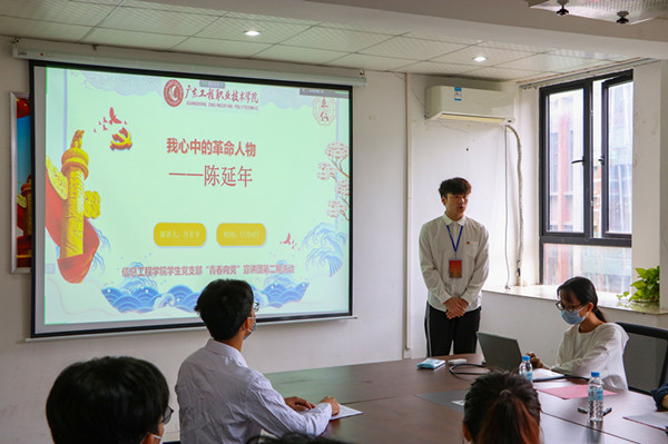 为更好的展示第二期宣讲团成员的风采,以及为第三期宣讲员做好示范,活动中安排了优秀宣讲员肖至辛为全体成员做宣讲展示,肖至辛同学以《我心目中的革命英雄——陈延年》为主题,讲述革命英雄陈延年的生平事迹和为党为国家做出的贡献,宣讲过程条理清晰,层次分明,情绪饱满,很好的展示了党员宣讲员的风采。