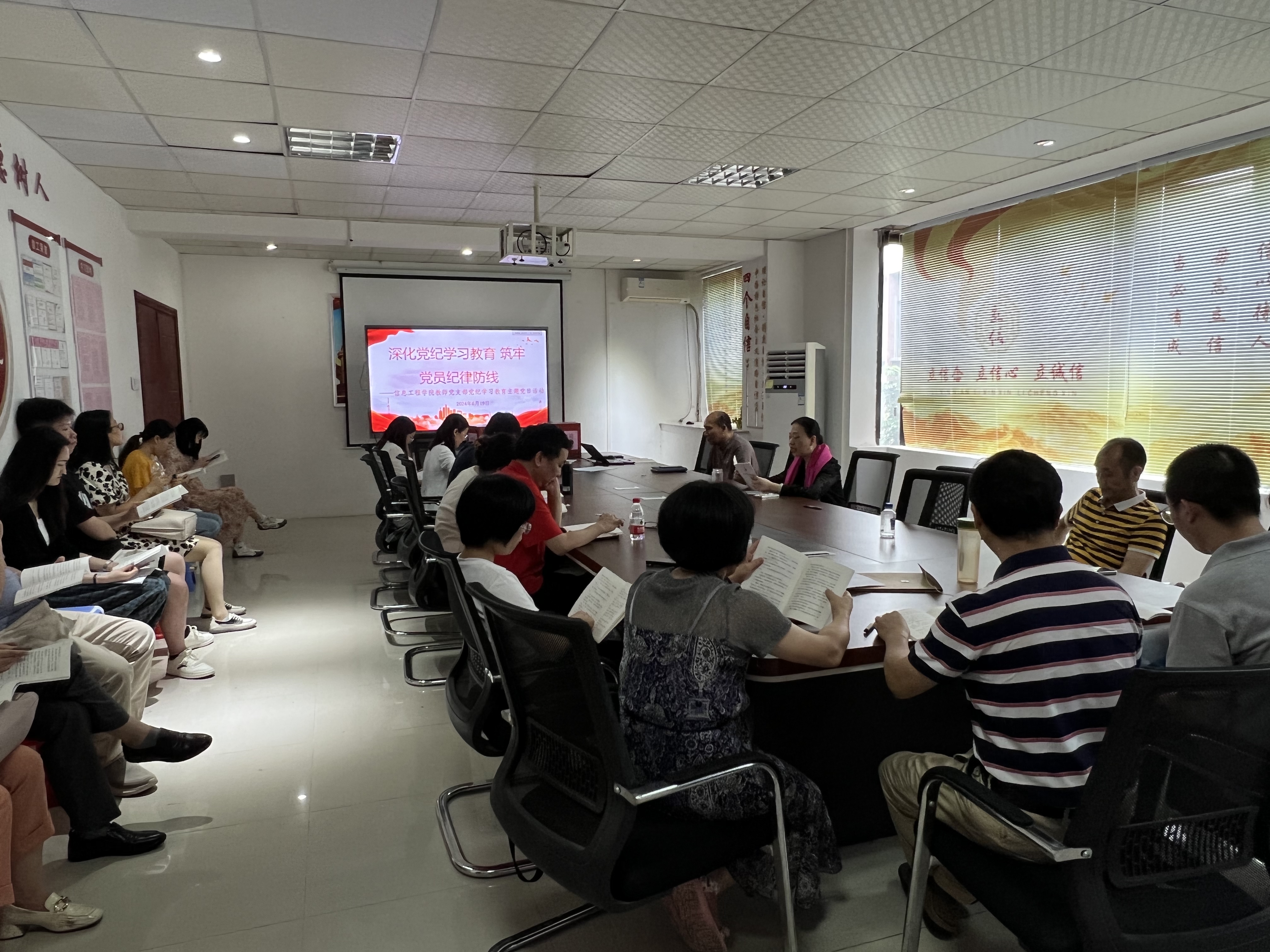 2024年6月19日下午,信息工程学院教师党支部在科技楼308召开支部换届选举大会暨党纪教育专题学习会。信息工程学院全体教师党员参加了此次会议。