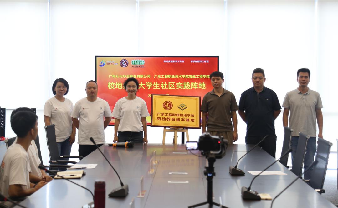 7月9日的鳌头镇,一场简朴而意义深远的揭牌仪式正在举行。广东工程职业技术学院与广州从化华豆种业有限公司携手共建的“大学生劳动实践基地”正式落地,标志着校地协同推动智慧农业发展迈出关键一步。
