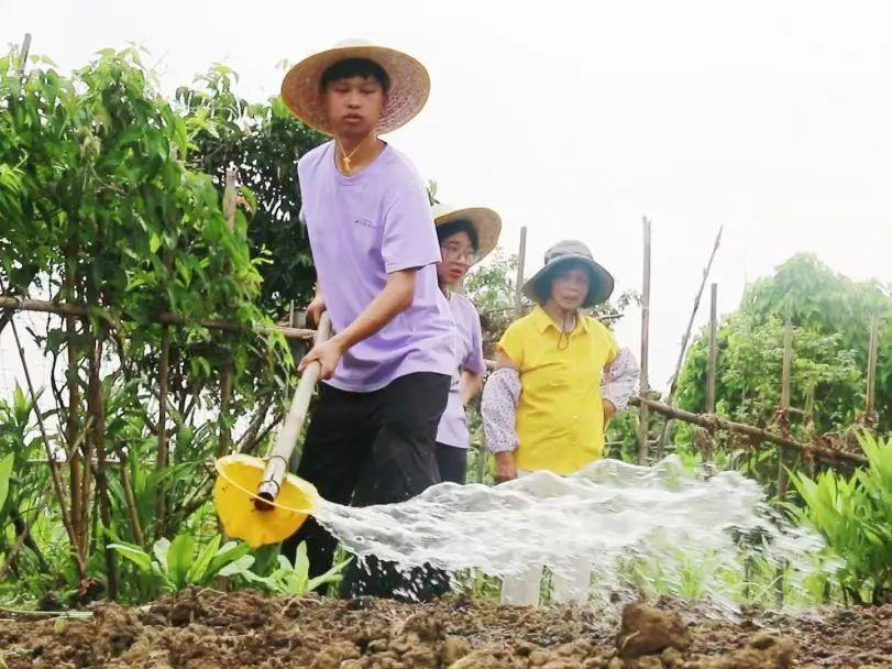 7月12日晨光微熹,白云区钟落潭镇的田野已是一片忙碌。“与农同耕·为农服务”双线实践在此展开。队员们挥锄松土的身影与农民劳作的身姿交织成一幅动人画卷。