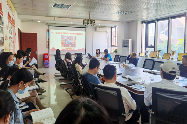 《习近平谈治国理政》第四卷是马克思主义中国化时代化的最新教材和最权威著作,为更好推动广大党员干部读好原著、武装头脑、指导实践、推动工作,会议在最后进行学习心得分享。党总支副书记艾华武、各党小组成员依次分享学习体会。同志们携带书籍现场分享,有结合疫情防控谈学生日常管理,有结合国际形势谈网络强国建设,有对照省域高水平高职院校指标和任务谈担当,与会同志建言献策极具代表性、针对性、时效性,为安全实现高水平高质量发展作贡献,以实际行动迎接党的二十大胜利召开。