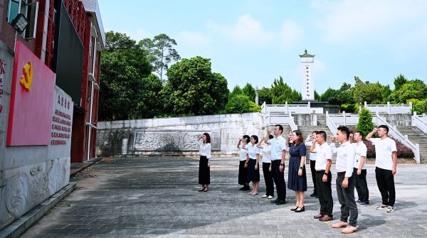 参观结束后,全体党员在大埔围村烈士纪念碑前整齐列队,面向鲜红的党旗,庄严举起右拳,在学院党委书记吴丽清的领誓下,重温入党誓词。“我志愿加入中国共产党……随时准备为党和人民牺牲一切,永不叛党。”铿锵有力的誓言在纪念碑广场上空回荡,表达了全体党员不忘初心、牢记使命的坚定信念。这一刻,历史与现实交汇,信仰与责任交融,每一位党员都在庄严的誓词中再次叩问初心,坚定为党的教育事业奋斗终身的决心。