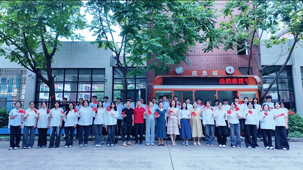动员讲话结束后,杨华同志号召全体党员牢记吴丽清书记的期望,扛起责任、做好表率。随后,吴丽清书记与曾婉玲副书记分别带队,前往东八、东九、东十一宿舍楼为党员宿舍挂牌。出发前,全体师生在东八、东九楼下拍摄大合照与支部宣传视频,为活动留下珍贵纪念。挂牌过程中,师生们同步开展宿舍安全隐患排查,重点检查电路安全、杂物堆放等问题,确保党员宿舍不仅是“示范窗口”,更是“安全堡垒”。
