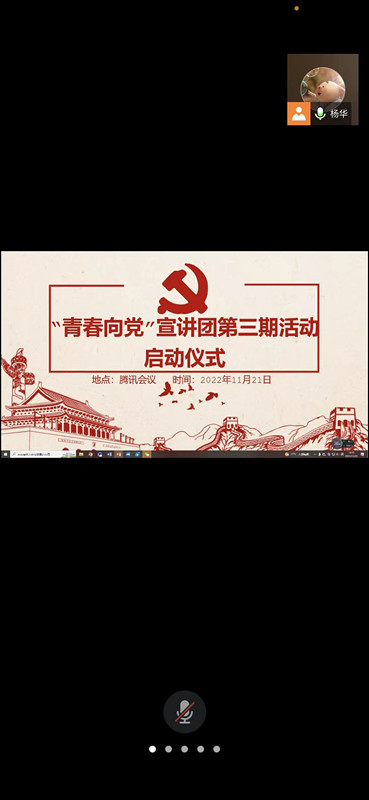 传承红色基因,弘扬立信文化,信息工程学院学生党支部于2022年11月21日中午在腾讯会议开展“青春向党”宣讲团第三期活动的培训会。参加会议的有党支部三位支委和宣讲团第三期全体成员。会议由杨华老师主持。
