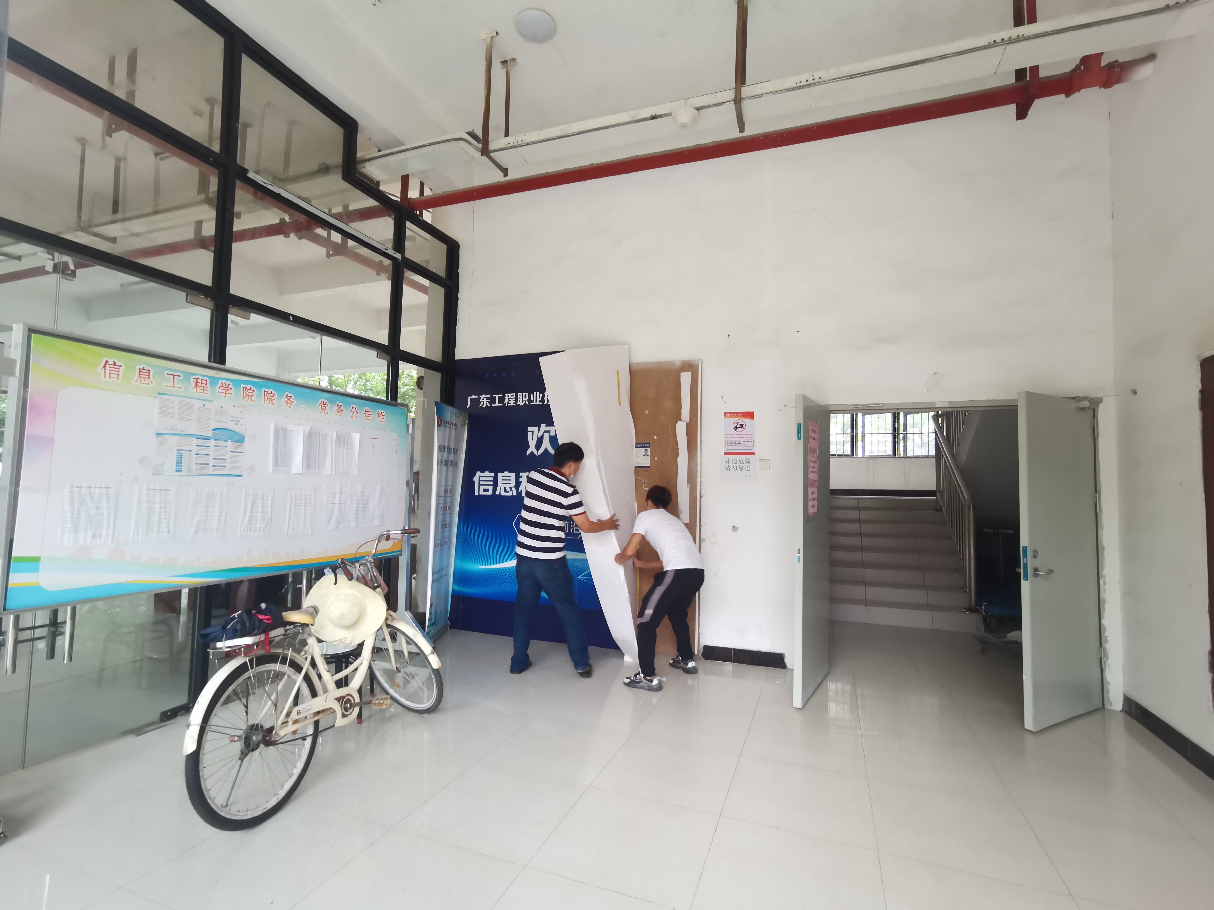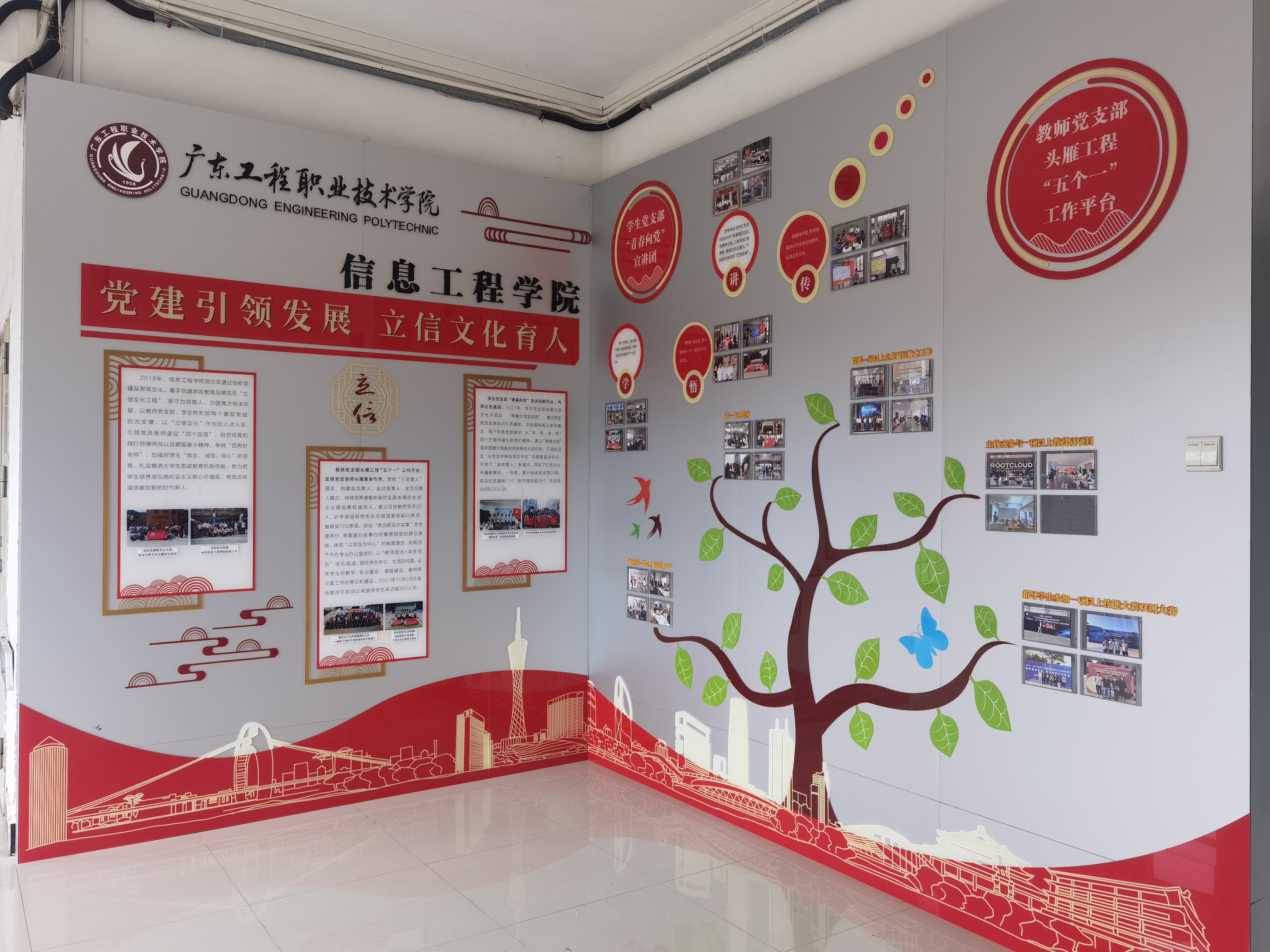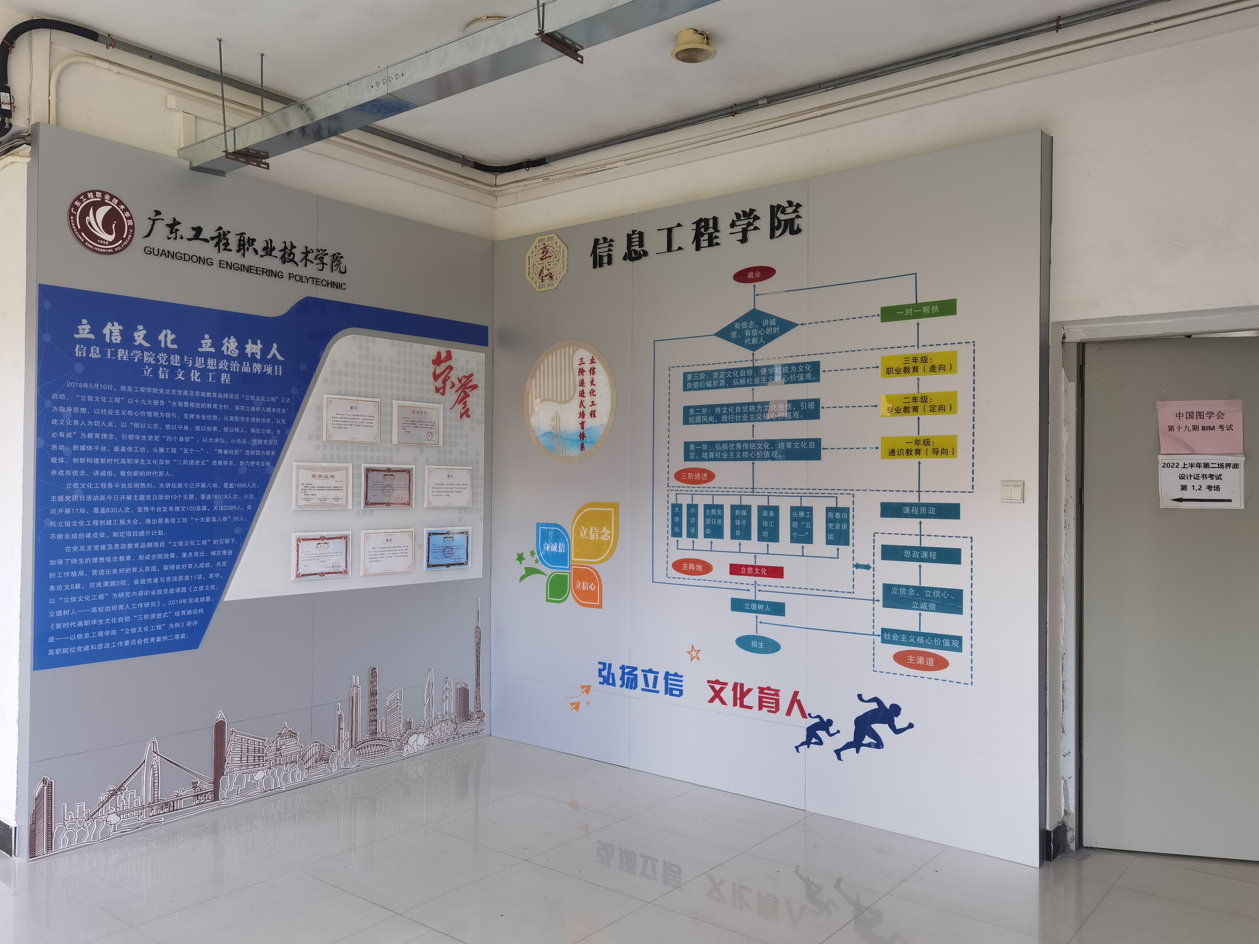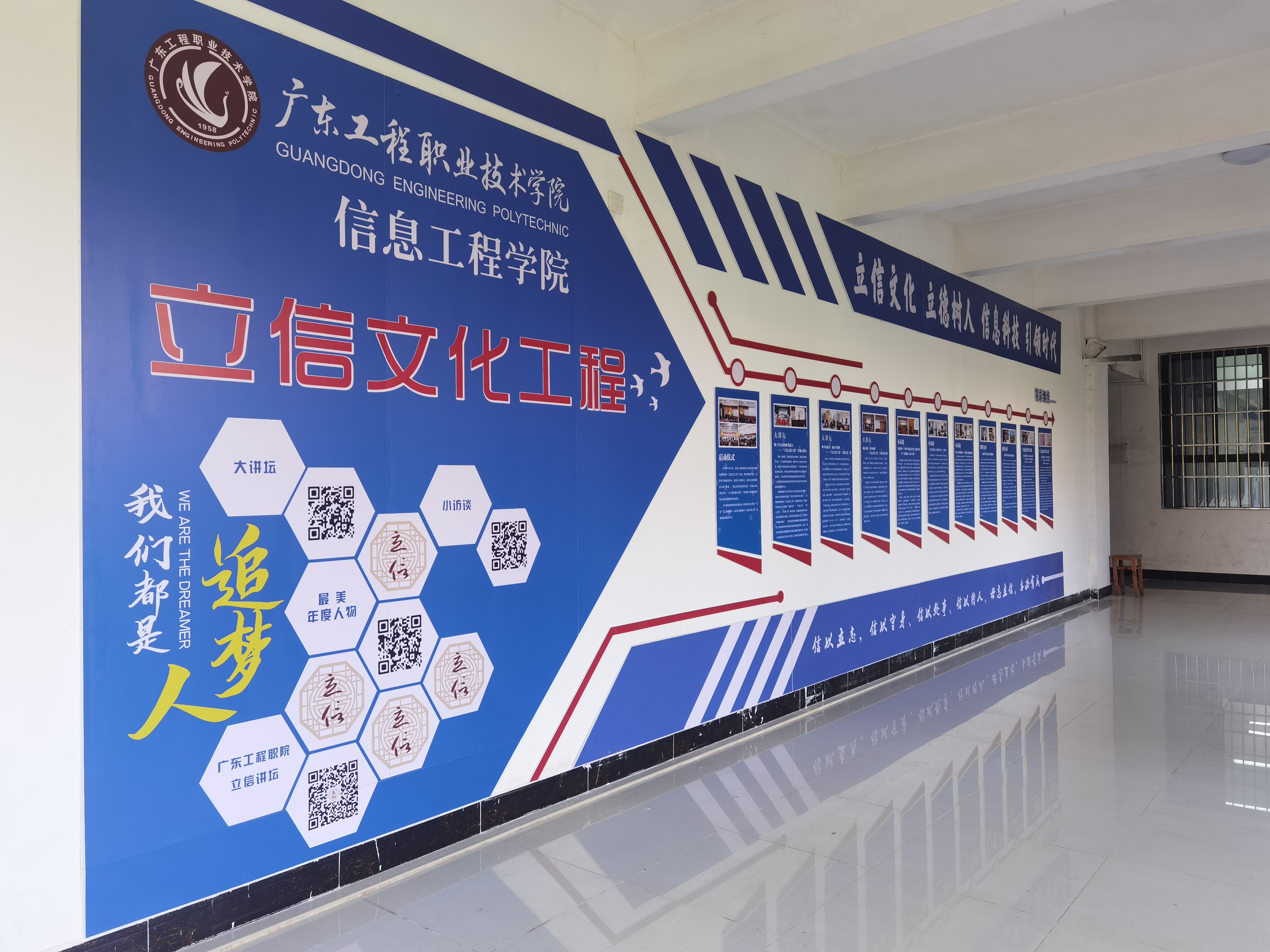 一楼展示深度合作企业、学院发展脉络、师生已获得的成就……站在科技楼大门,迎面宣传栏的科技蓝和信息工程学院的专业特色、信息科技因素等相互呼应。该学院原是计算机信息系,2000年成立,2021年获评“省级高水平专业群”,现有软件技术(国家骨干、省品牌、专升本协同育人试点专业)、计算机网络技术(省品牌)、数字媒体技术(校重点),计算机应用技术、现代通信技术和云计算技术应用6个专业,为粤港澳大湾区乃至全国各地输送了大量信息技术类人才,得到用人单位好评。