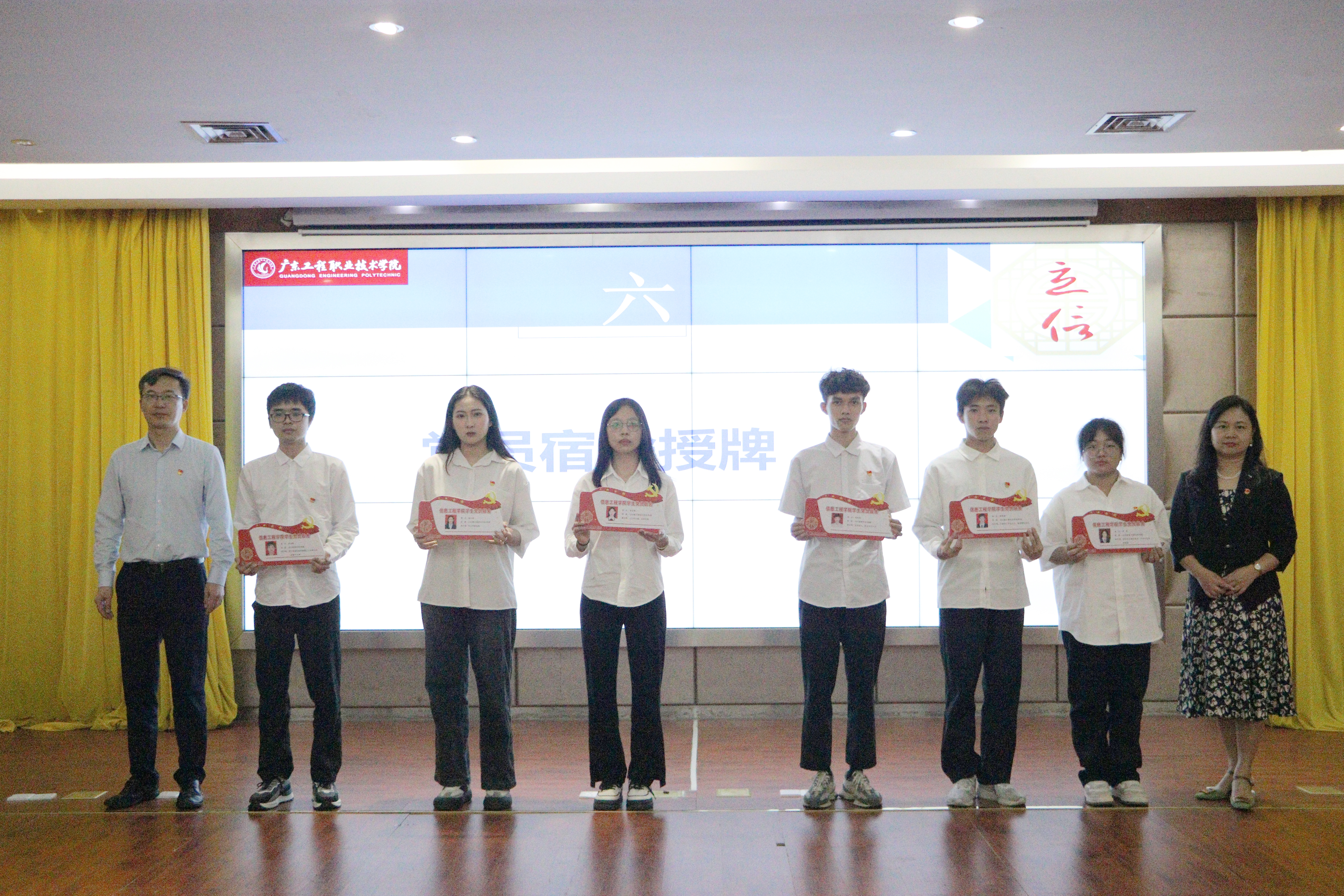 学生会干部,学生党员代表分别就“三进三评”工作落实情况和党员在宿舍中的先锋模范作用进行介绍和表态发言后,张小广副校长、黄馥丽部长为党员宿舍授牌。