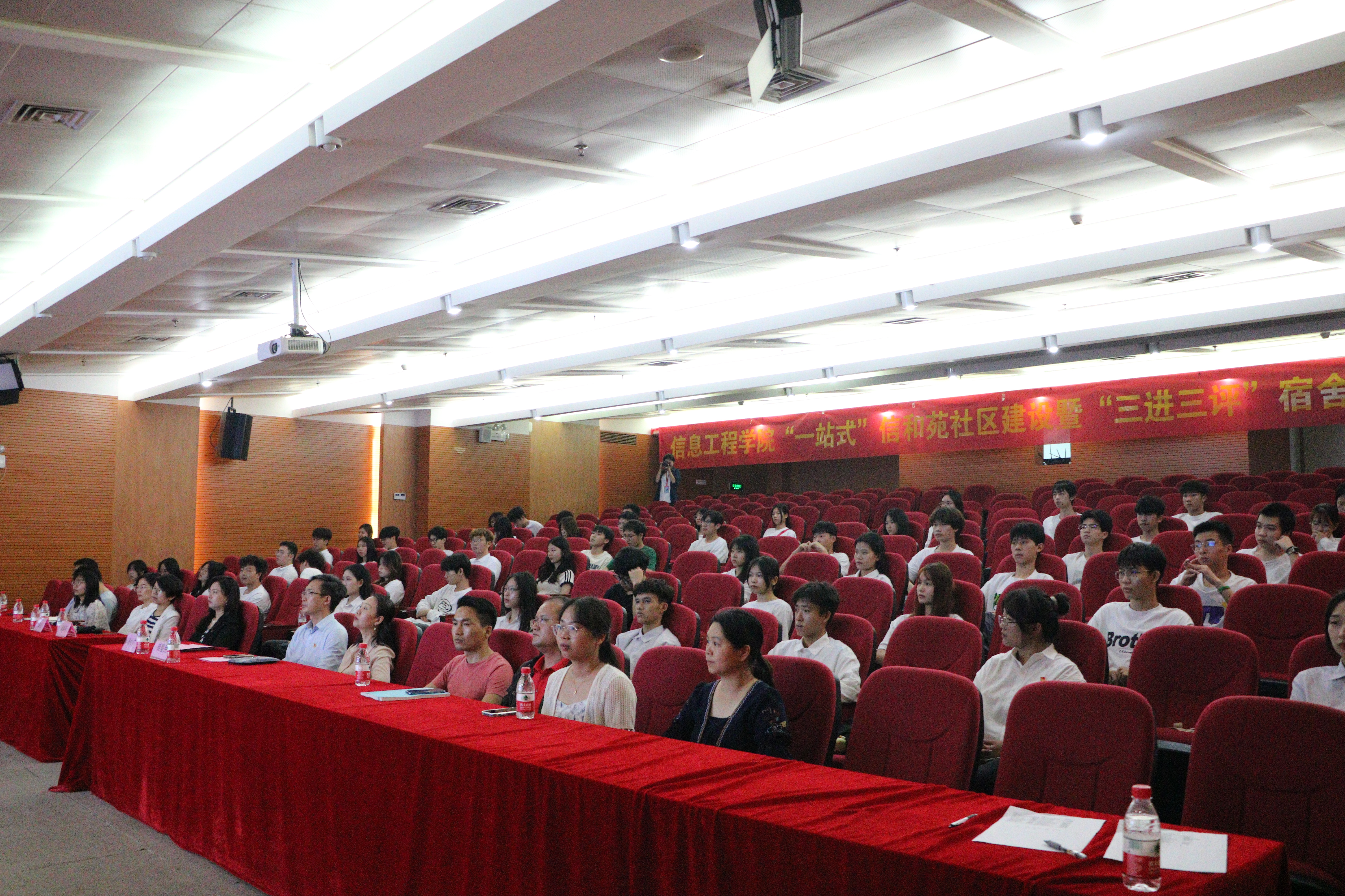 2024年4月1日中午,信息工程学院于图书馆学术报告厅举办“一站式”信和苑社区暨“三进三评”宿舍文化月启动仪式。学校张小广副校长、学生工作部黄馥丽部长、信息工程学院党委桂爱民书记、艾华武副书记、全体辅导员及各班学生代表出席,会议由艾华武副书记主持。