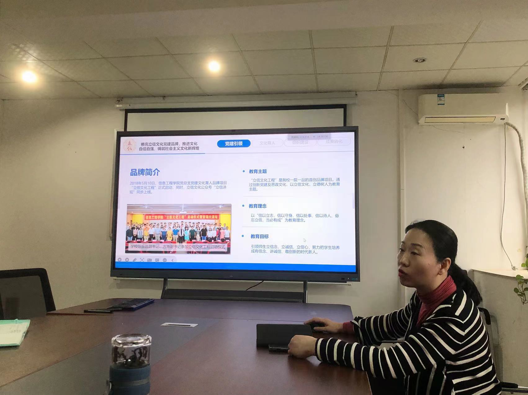 桂爱民书记围绕擦亮立信文化品牌,开拓党建工作新局面为落脚点,以突出党建引领、突出文化育人、突出组织建设、突出成果转化介绍了党建品牌“立信文化工程”的优秀做法和显著成果,分析了存在的四点问题:一是党员对于党的理论学习不够深入;二是对“立信文化工程”的研讨及建设力度还不够;三是教师和学生党员发挥头雁作用还不够;四是党员发展培育工作机制还有待完善。并提出六点加强和改进工作的思路和措施:第一,组织党委深入开展党史教育,加强主题教育的成果转化。第二,加强党风廉政建设,落实全面从严治党主体责任。第三,发挥党建引领、思政铸魂、文化育人的作用,全力构建“立信文化工程”党建思政文化育人体系。第四,深入实施头雁工程“五个一”平台,打造“青春向党宣讲团”,从培养党员、建设团队、提升技能等方面创新培养方法。第五,通过“最美信工坊”“立信讲坛”等平台强化党建思政宣传工作,把握思想文化阵地。第六,优化党员发展培育工作机制,提升党员发展质量。