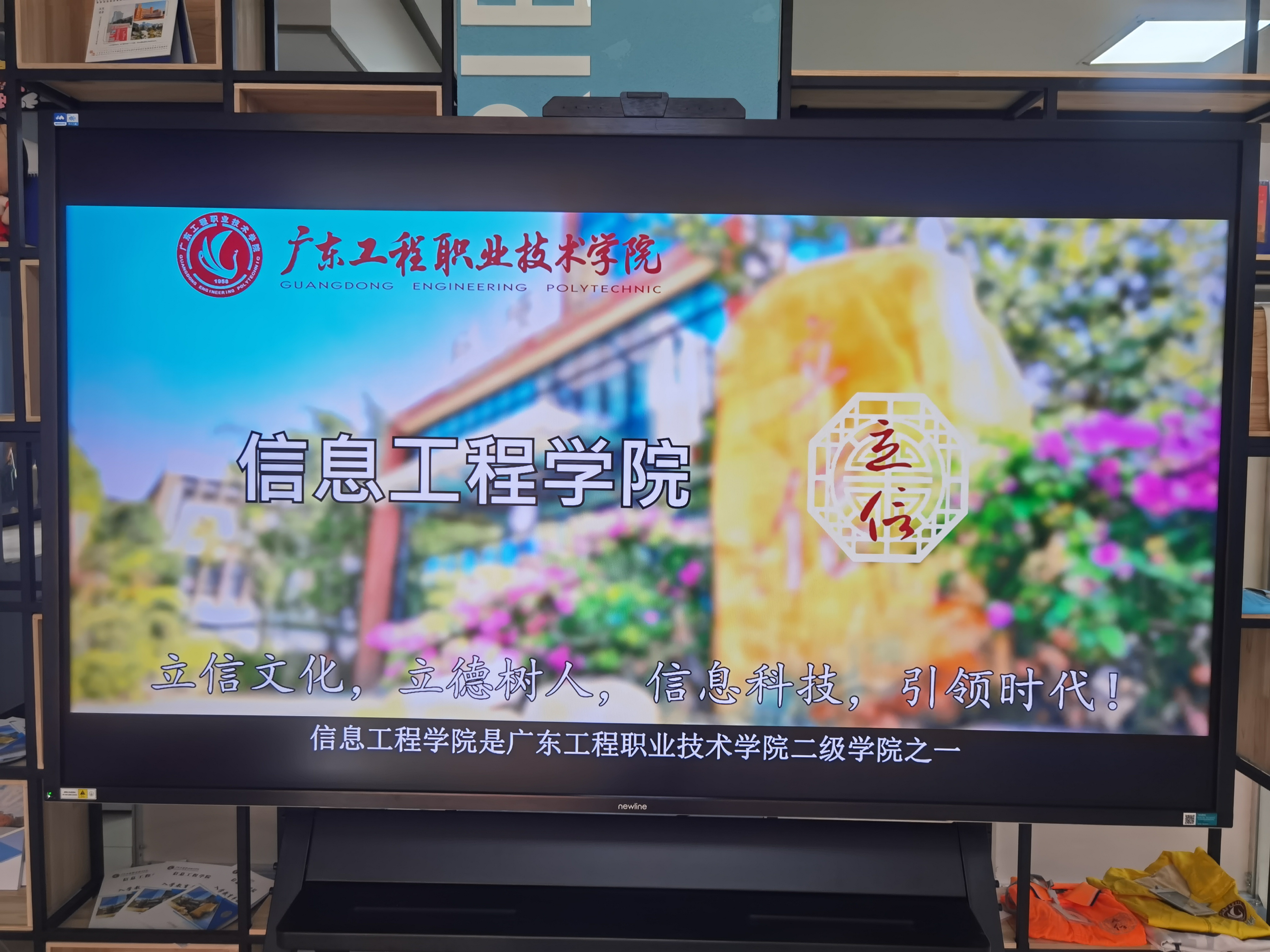 我院以图书馆一楼就业大厅作为迎新工作大本营。迎新会场的布置高度融合了我院立信文化内涵。迎新现场设置专业展示区,通过学院介绍、立信文化介绍宣传栏、学院宣传片和学生作品展示来弘扬学院立信文化。