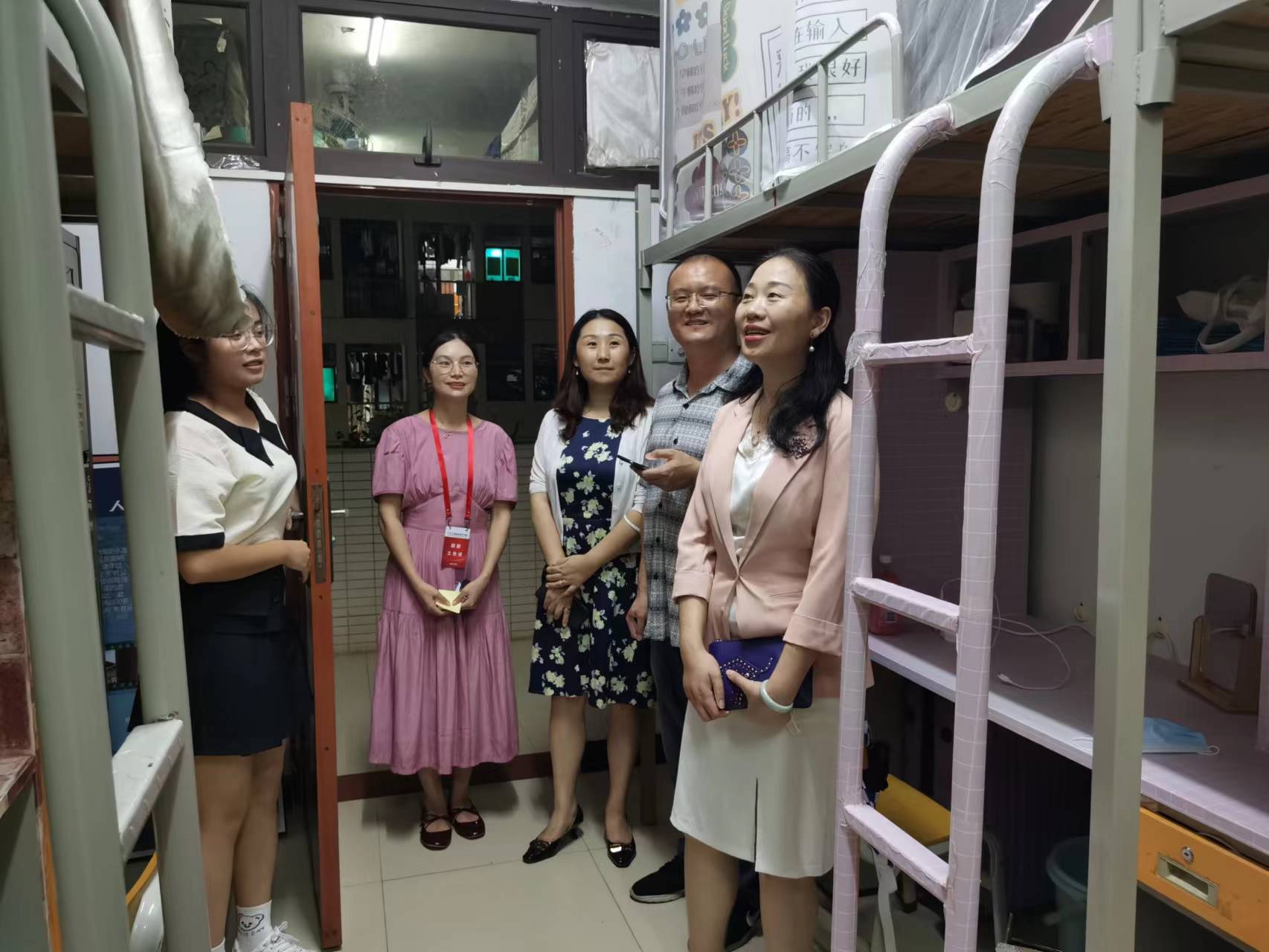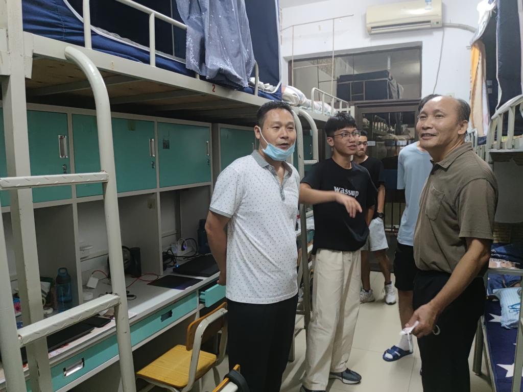 当晚七点,学院领导、辅导员、助班们下到新生宿舍进行亲切慰问,了解学生入住情况、检查宿舍硬件设施问题、与学生进行亲切交谈。