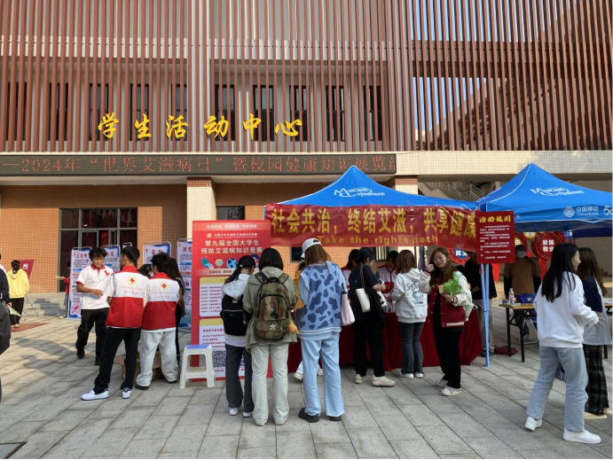 为强化校园艾滋病性病防治知识普及,提升学生自我防护与健康意识,全力遏制艾滋病的传播扩散,一场以“社会共治,终结艾滋,共享健康”为主题的世界艾滋病日系列活动,近日分别广州校区创业广场及省职教城(清远)校区学生活动中心广场盛大举行。活动不仅涵盖了艾滋病相关知识,还广泛涉及水痘、肺结核、登革热、流感等各类传染病知识,以及食品安全、减盐减糖减油增豆等健康饮食理念的宣传展览,旨在全方位提升学生的健康素养。