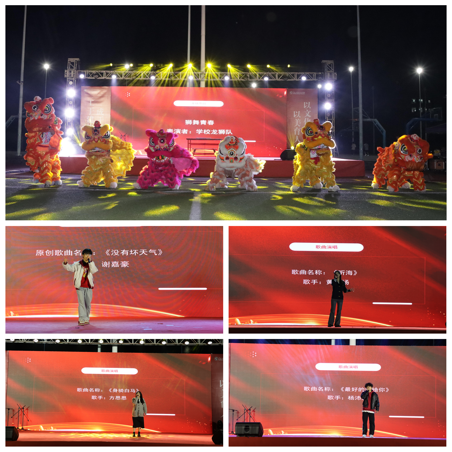 据统计,本届比赛覆盖所有二级学院,共计90余名选手参赛,比赛不限舞种、人数,形式丰富多彩,决赛现场,12 组晋级选手展示了民族舞、英歌舞、街舞、现代舞、啦啦操等多种舞蹈类型,现场激烈角逐,精彩纷呈,在舞动的世界里,选手们用优美的肢体语言,通过肢体舞动的方式向观众们展示自己的舞蹈演绎,活动现场虽寒风阵阵,但在场的观众们感受到青春的热烈与柔美以及梦想的激扬与火热,现场不时响起一阵阵热烈的欢呼声和掌声;活动邀请了学校龙狮队作为开场表演节目以及学校声乐协会的同学担任演唱嘉宾。