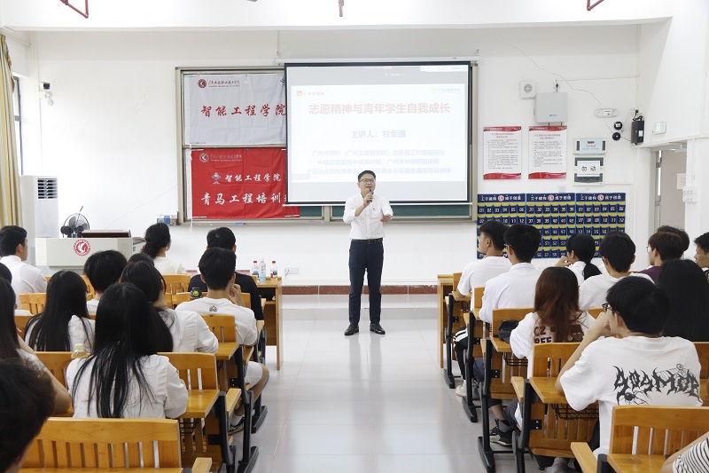5月28日下午,智能工程学院在清远校区Q1-121教室举办青马工程专题培训讲座,特邀广州市团校(广州志愿者学院)志愿者工作部副部长甘荣通担任主讲,学院党委副书记曾婉玲、辅导员及青马班全体学员参加活动。