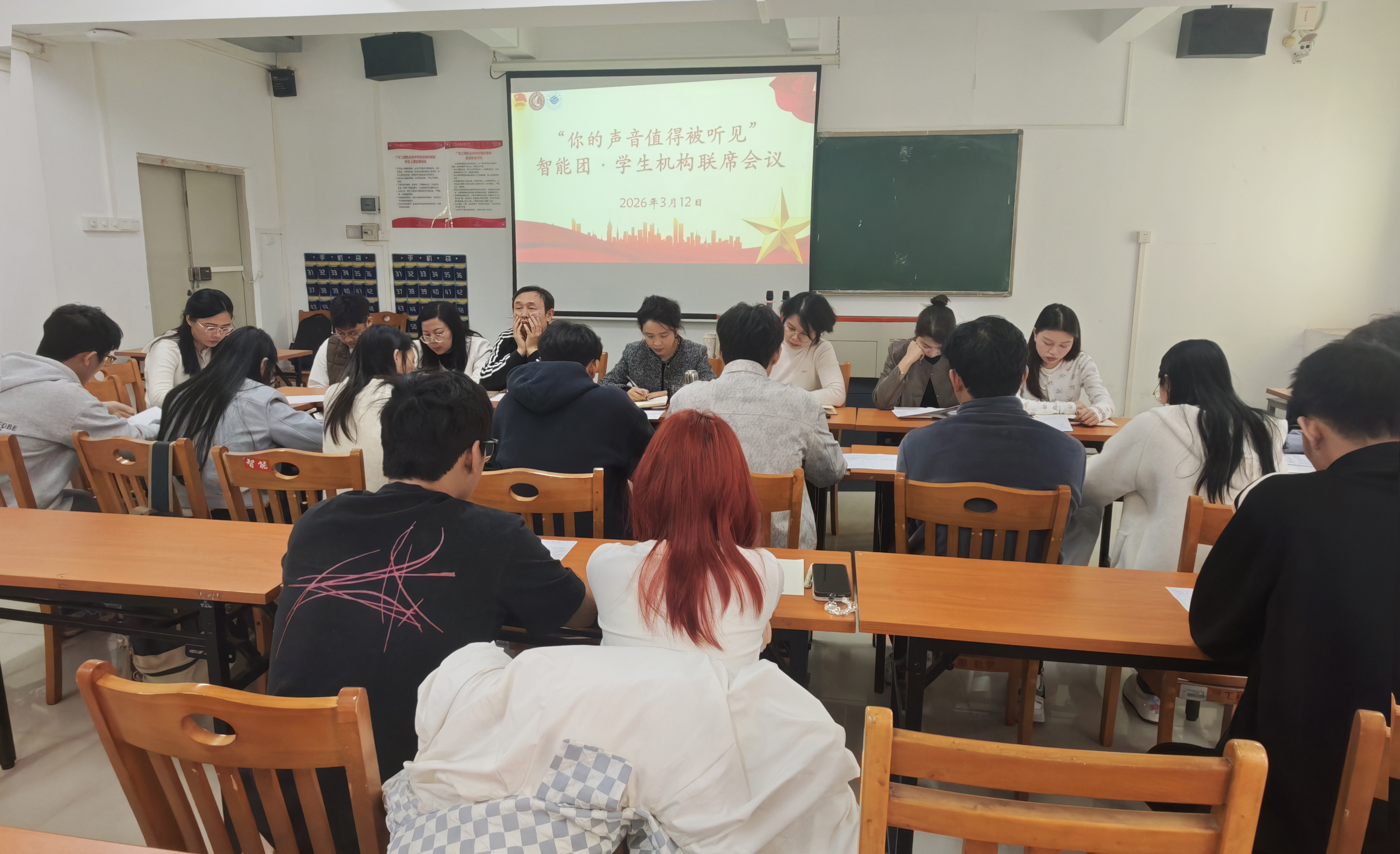3月12日中午,智能工程学院以“你的声音值得被听见”为主题,召开新学期“智能团”学生机构联席会议。学院党委副书记曾婉玲列席指导,学工办主任、团委书记林莹主持会议,各学生机构指导老师及骨干代表参会,深入学习贯彻全省高质量发展大会精神以及学校相关会议精神,共绘学生工作高质量发展新蓝图。