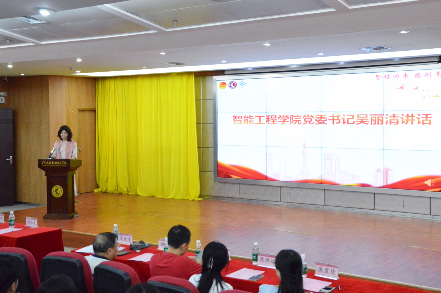 2025年5月21日下午,智能工程学院以“智学笃信 青春砺行”为主题,在广州校区图书馆报告厅与清远校区Q4-206教室同步举办2025年“五四”创先争优表彰大会暨第十六期“青马班”开班仪式。校团委书记刘山发,智能工程学院党委书记吴丽清、副书记曾婉玲,马克思主义学院邹开明副教授等领导嘉宾及师生代表近200人参加。活动由学院团委书记胡朝红主持。