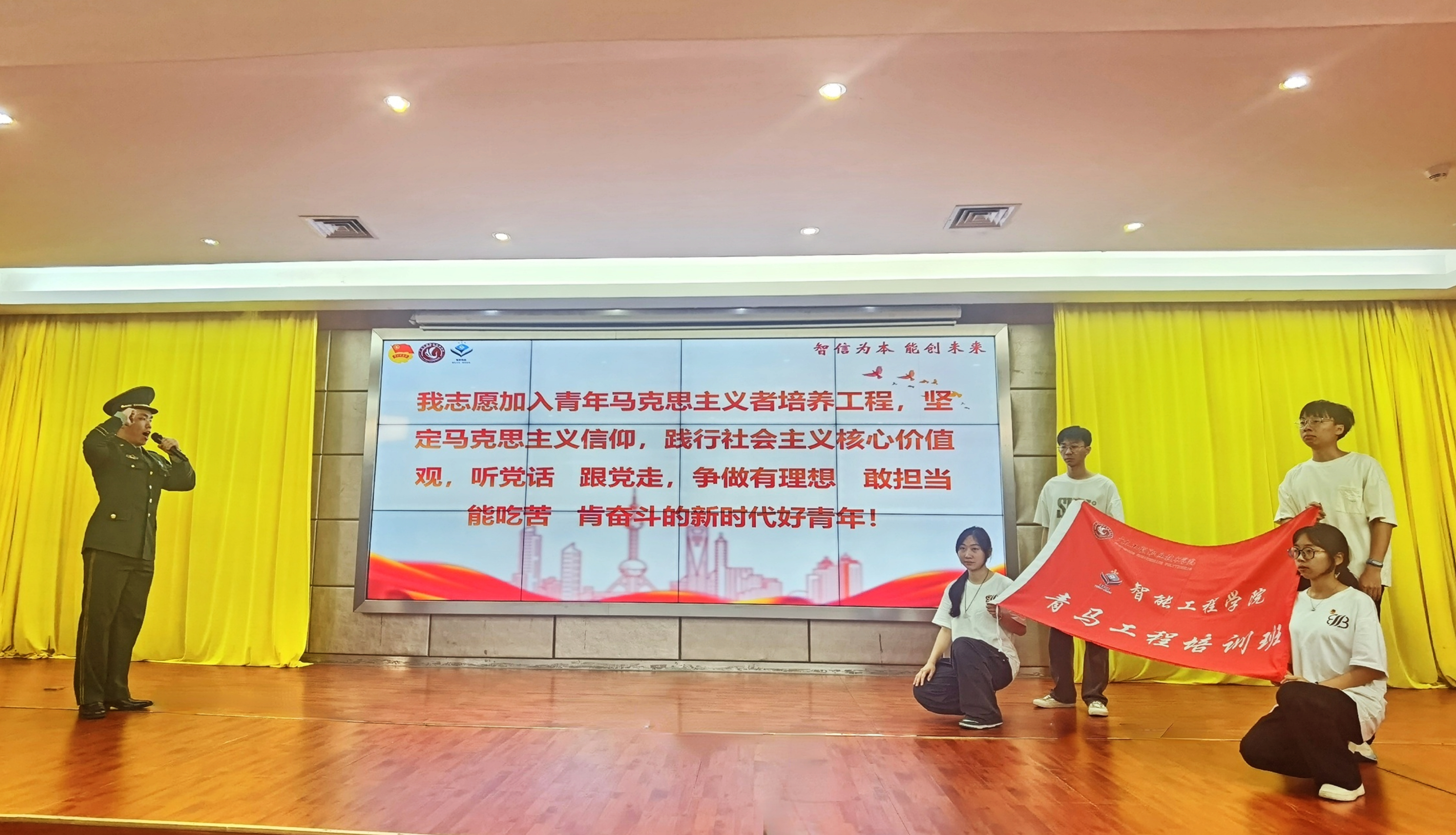 校团委书记刘山发授旗,标志着第十六期“青马班”正式启动,本次“青马工程”共设置理论学习和实践两大模块,设有“引进来”的教育强国、志愿精神、公文写作等专题讲座,“走出去”红色基因传承实践活动、团队建设等丰富内容,吸引102名同学报名。