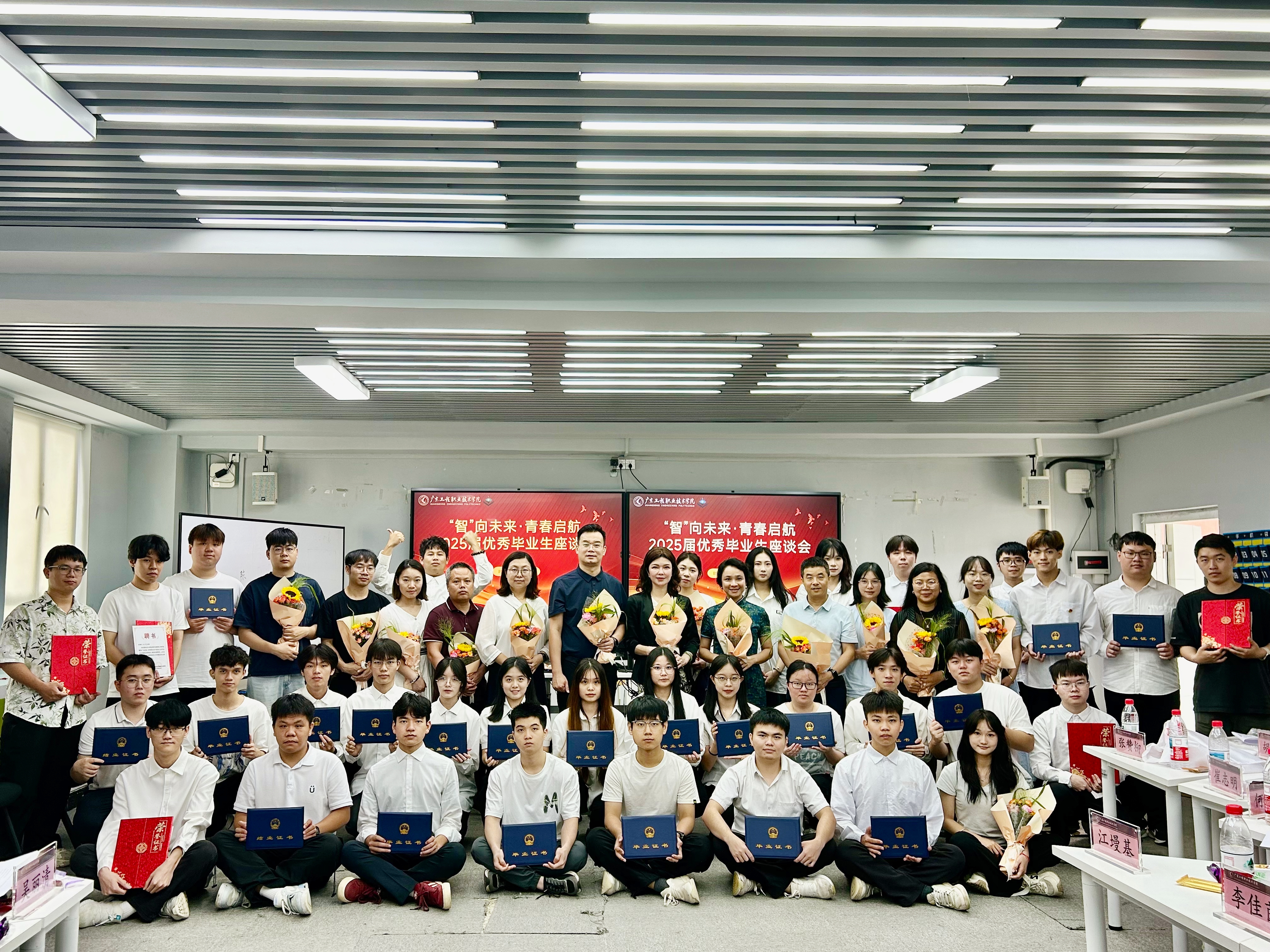 科技楼大门口展厅,历届校友合照下还留有学生们的手写祝福,“今日我以母校为荣,明日母校以我为傲”的横幅随风轻扬,与不远处刚揭牌的智能工程学院党委“红色驿站”暨“一站式”学生社区劳动教育实践基地遥相呼应。在这栋学生上课的科技楼604会议室,“智”向未来·青春启航2025届优秀毕业生座谈会温馨举行着。今年智能工程学院聘任19名班长为2025届校友联络员,搭建产业导师、实习推荐双通道。智能工程学院党委书记吴丽清为校友联络员颁发聘书,寄语校友联络员充分发挥沟通桥梁作用,把智能工程学院钻研新一代信息技术前沿的劲头继续发扬,为祖国科技建设发展写下青春最生动的注脚!