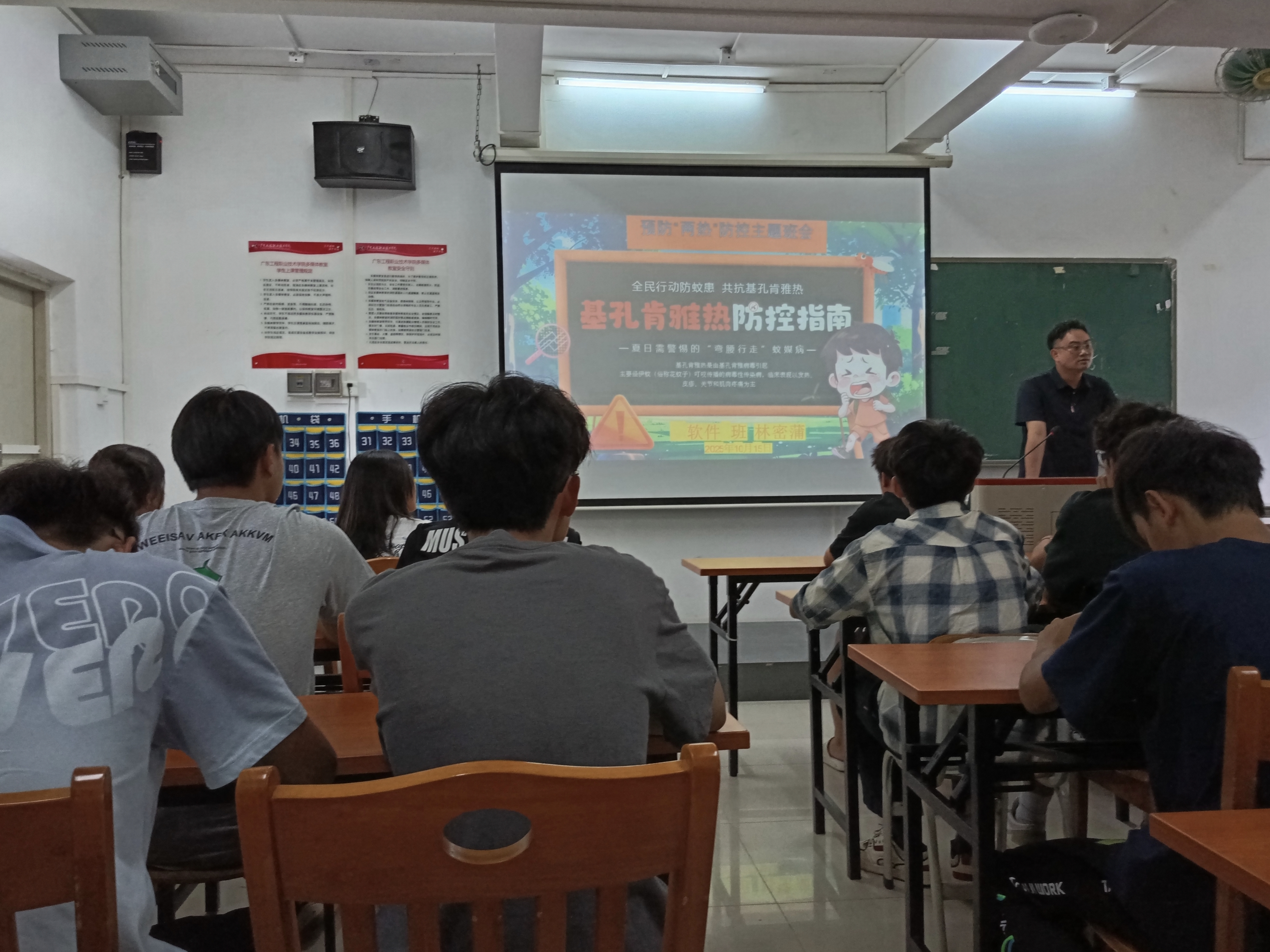 为统一思想认识,强化纪律要求,学院及时发布《智能工程学院关于预防“两热”防控工作的通知》《智能工程学院关于“两热”防控知识科普与统一消杀工作的温馨提示》,组织全体班主任迅速召开“两热”防控主题班会,通报当前的防控形势,系统学习“两热”防控知识,引导学生科学认识蚊媒传染病,掌握防蚊、灭蚊的主动防护技能。除了组织召开班会还要求班主任、辅导员做到“两个逐一”:逐一走访每一间宿舍、逐一走访每一个学生,检查宿舍卫生大清洁以及蚊帐悬挂检查行动,从“面对面”到“心贴心”,既推动防控措施落地见效,又搭建起师生信任的桥梁,确保了信息全覆盖、知识全掌握。