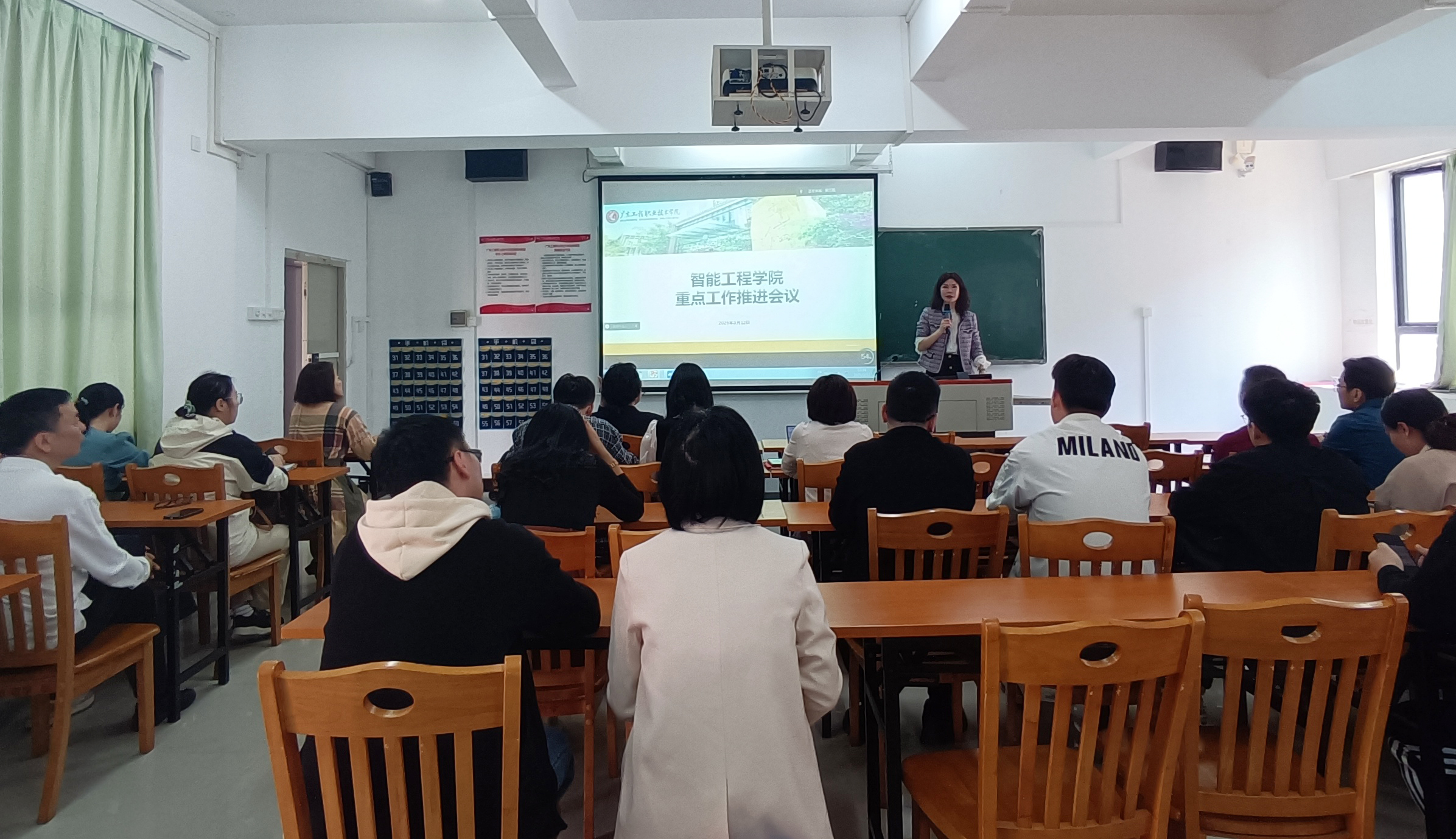 3月12日上午,智能工程学院召开了重点工作部署推进会议,全面启动就业攻坚、绩效改革、“双高”建设三大攻坚任务。会议由学院党委书记吴丽清主持,院长麦晓冬、学院党委副书记曾婉玲、副院长卢世军和全体教职工参加了会议。